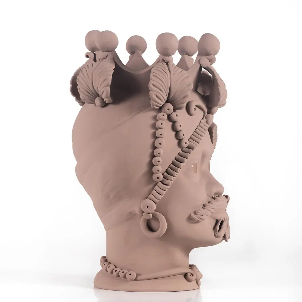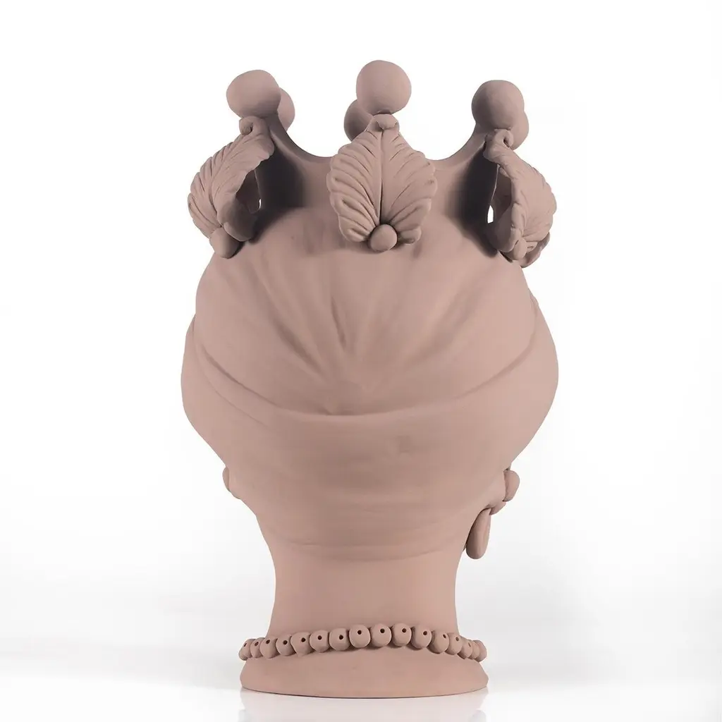 This splendid range of vases is entirely crafted by hand as in Sicilian tradition and is a gloriously inspired by Greek mythology. In this example, the Ade vase features a matte salmon beige finish and makes a creative and stylish addition to any outdoor setting or area in the home where flowers or plants will complement the decor.