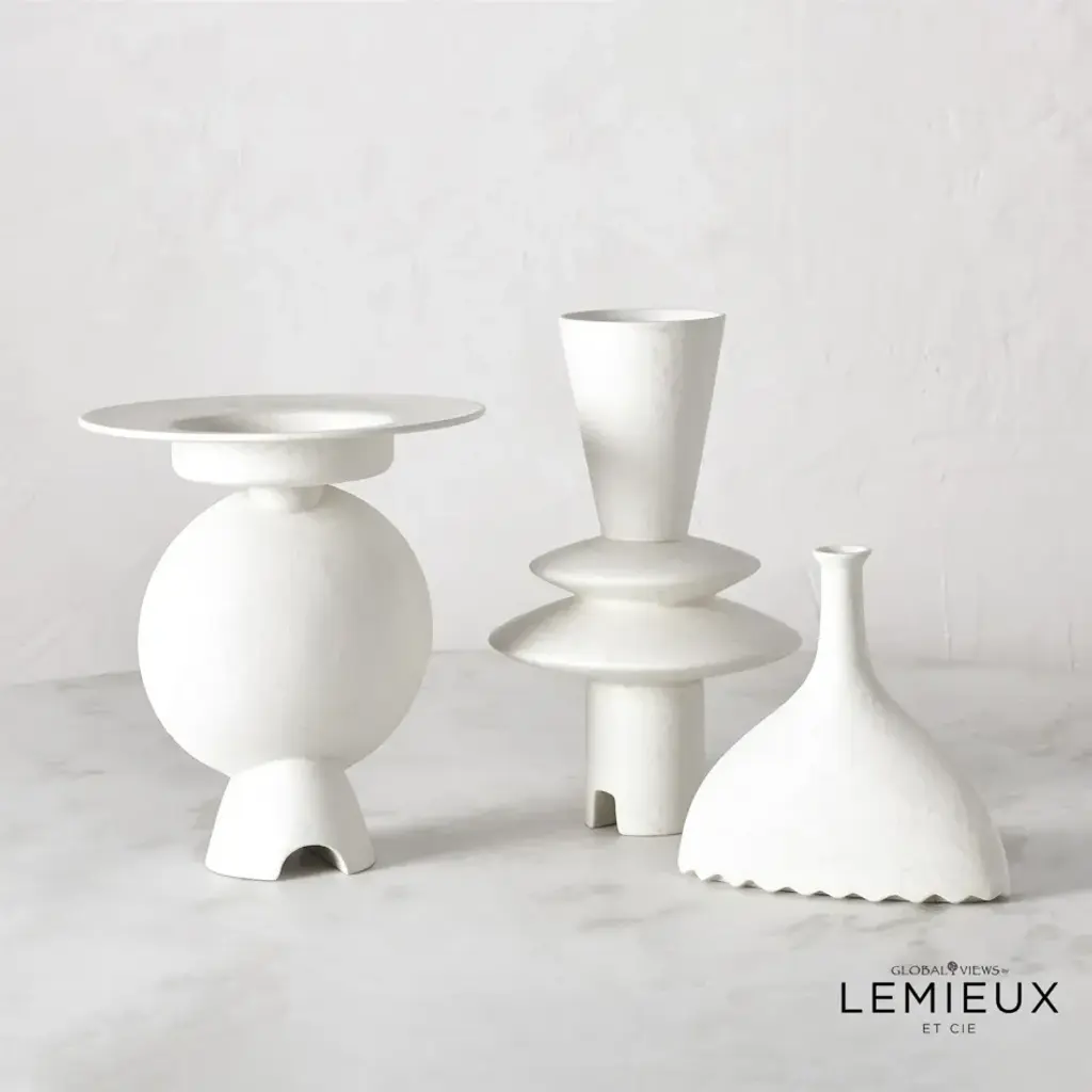 The Adelyn Geometric vase is reminiscent of incredible Danish design. Taking cues from the incredible forms from mid-century lighting, this vase is striking in shape and function. From a fashion forward perspective, Global Views offers accessories, furniture, statement lighting, and an assortment of rugs and mirrors to add beauty and joy to your home.