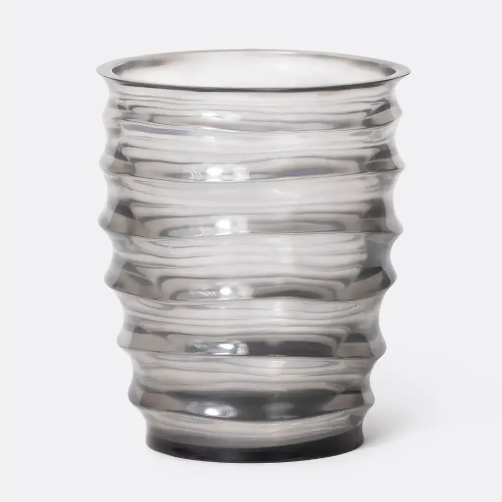 Inspired by the spiraling movement of air, often seen through smoke or mist, the new Aer vase by Gabriel Tan for MENU brings sculptural appeal to surfaces. Taking its name from the Latin word for air or vapor, the vase's asymmetrical silhouette undulates in liquid-like waves to bring a tactile, almost ethereal quality to the glass. Offered in two sizes, high or low, the sculptural design is ideal paired in twos to display flowers or branches, yet looks equally beautiful as a standalone sculpture.