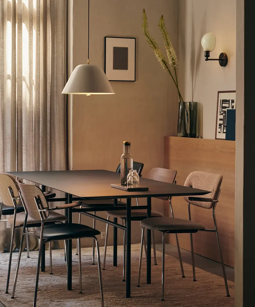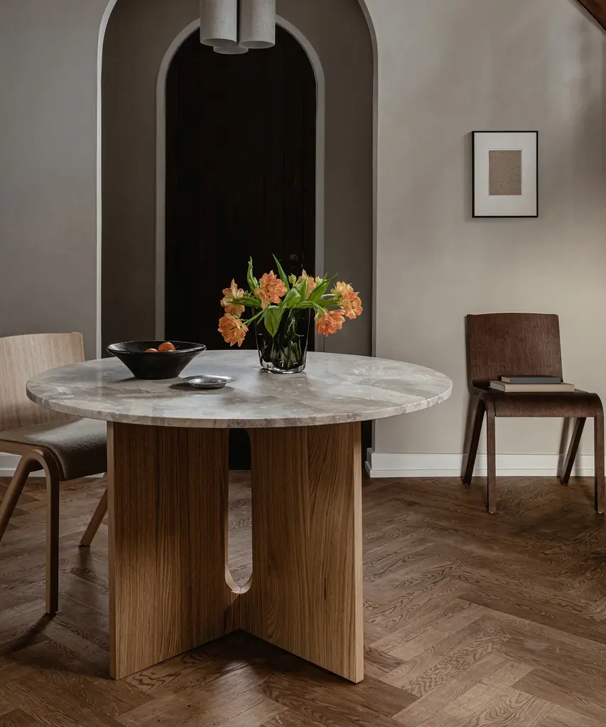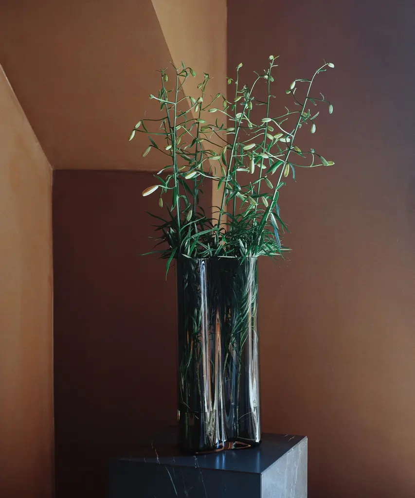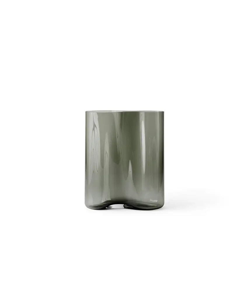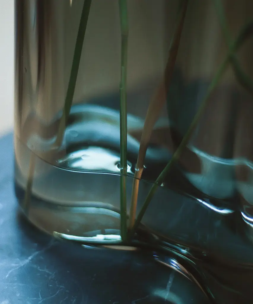 Refracting and reflecting light through its rippled glass surface, the Aer vase brings a new perspective to traditional vases. The ethereal design holds multiple floral arrangements within the same vessel, making it both practical as well as sculptural. The tactile surface of the rippled glass vase, offered in two sizes, is made during a precision process whereby molten glass is mouth-blown into a double cavity tool that reveals the complex three-dimensional shape. The finished design displays different visual characteristics depending on the viewing angle. Designed by Gabriel Tan for Danish design company Audo Copenhagen.