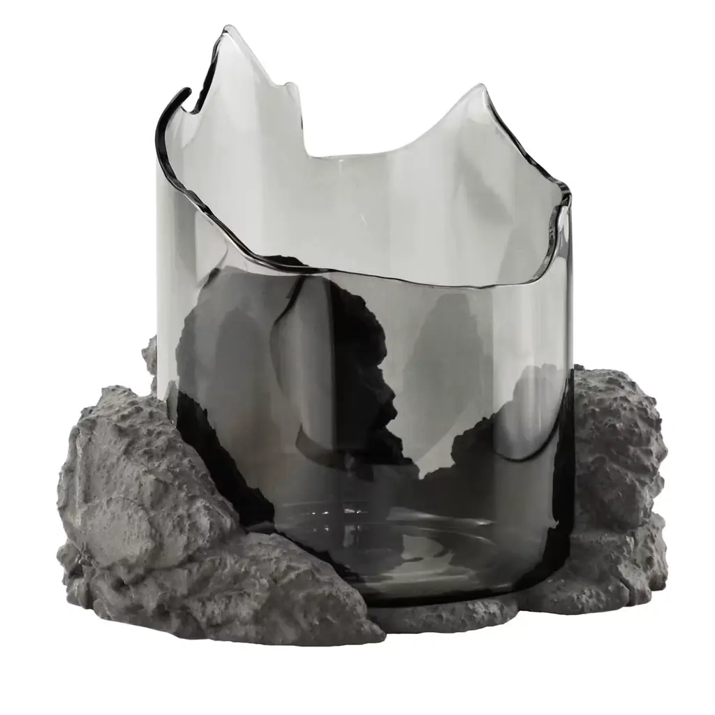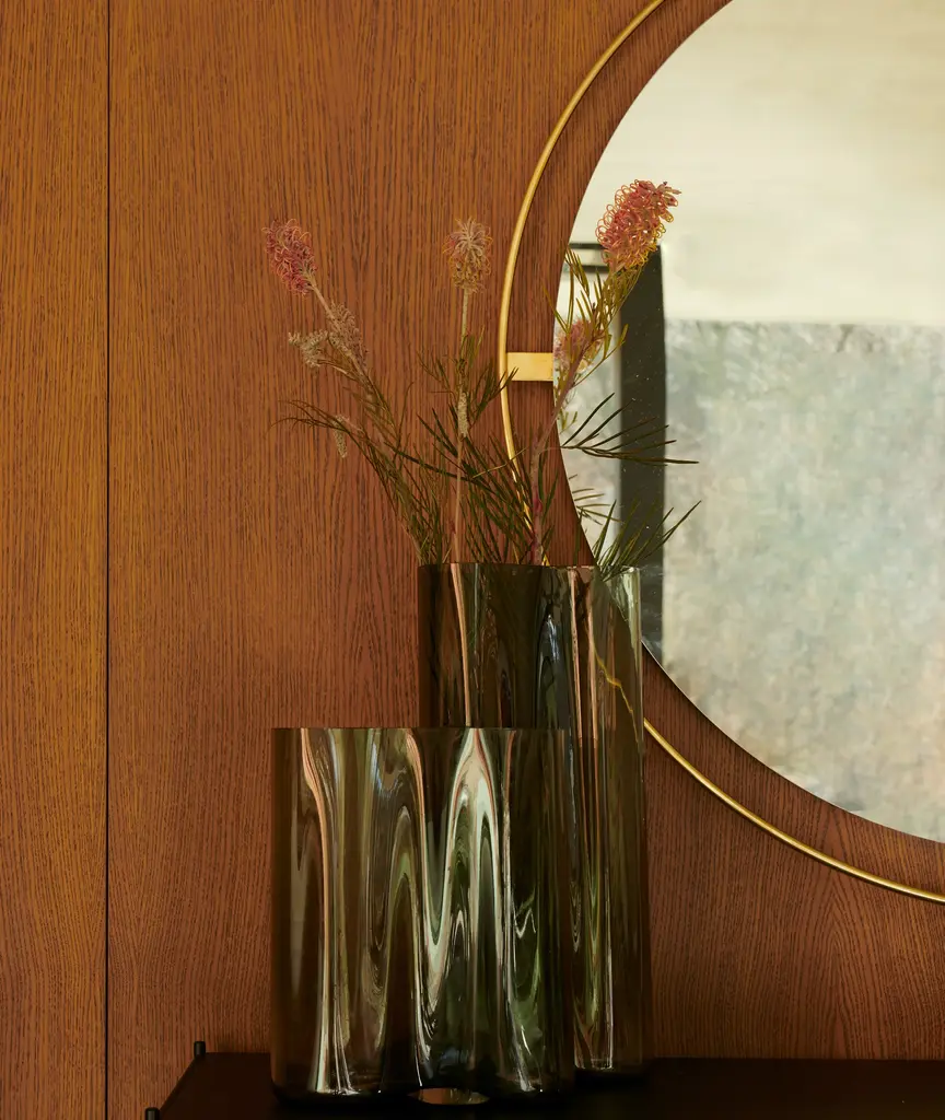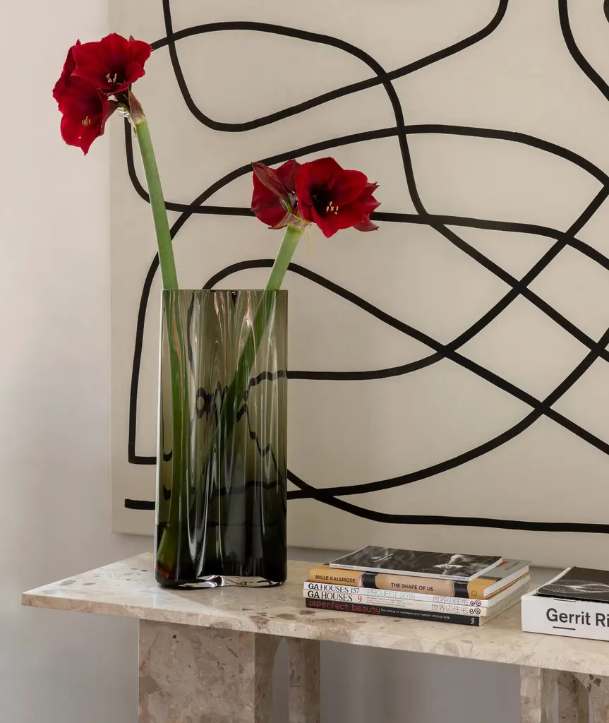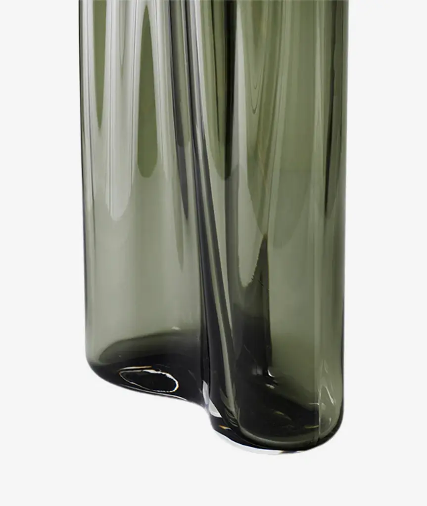 Inspired by the spiraling movement of air, often seen through smoke or mist, the new Aer vase by Gabriel Tan for Audo Copenhagen brings sculptural appeal to surfaces. Taking its name from the Latin word for air or vapor, the vase’s asymmetrical silhouette undulates in liquid-like waves to bring a tactile, almost ethereal quality to the glass. Offered in two sizes, high or low, the sculptural design is ideal paired in twos to display flowers or branches, yet looks equally beautiful as a standalone sculpture.