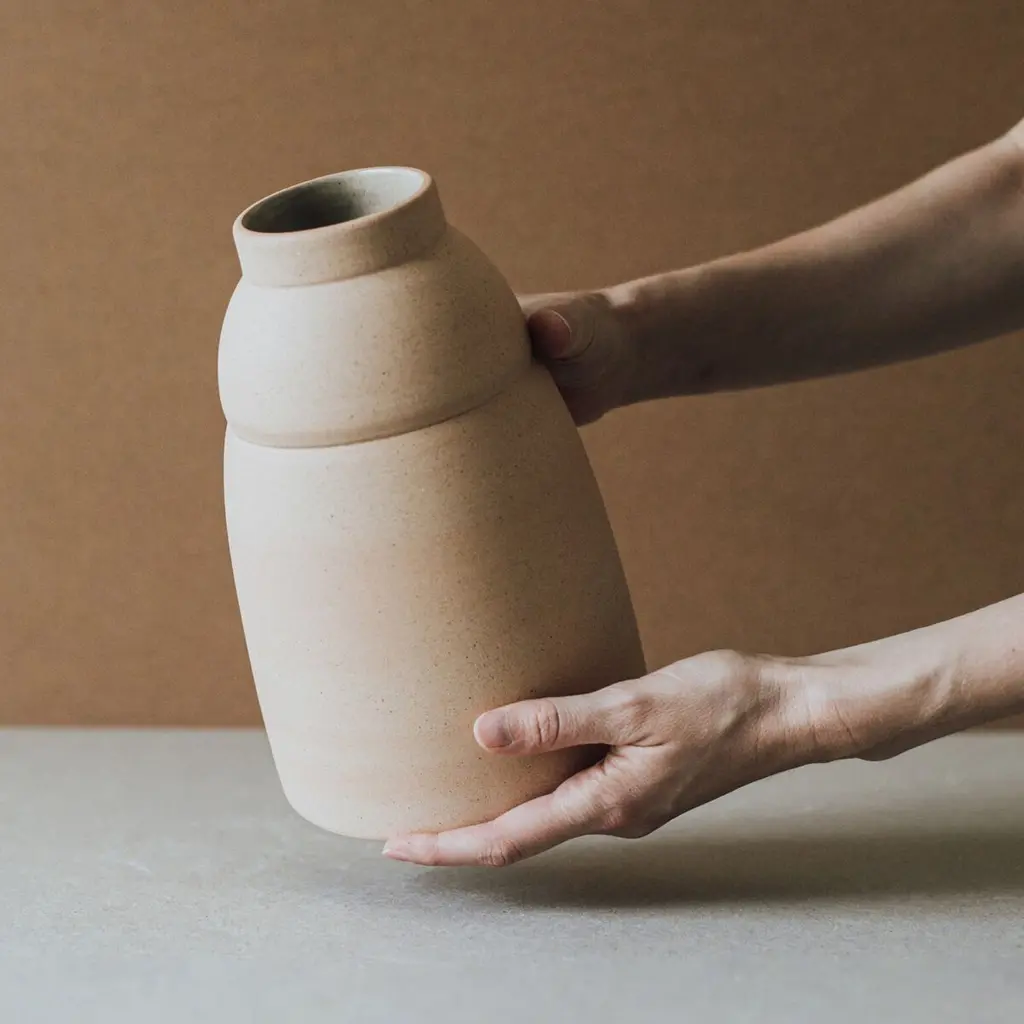 Handcrafted ceramic vase made with a mixture of local clay. Wheelthrown and glazed only on the inside. The final earth tones and textures are the result of the different combinations of clays exposed to the heat of the kiln fire. Al Centro Ceramica is a renowned Mexican company specializing in the production and distribution of exquisite handcrafted ceramic pieces throughout Jalisco and its surrounding regions. From beautifully sculpted vases to unique and food-safe drinkware, each piece is masterfully crafted and built to last. Fueled by an insatiable passion for the medium's versatility, captivating forms, and intricate processes, Al Centro have acquired a remarkable talent for unearthing and curating an array of one-of-a-kind pieces crafted by talented artisans and esteemed workshops. The culmination of these efforts is an awe-inspiring compilation of truly authentic, beautifully handcrafted objects that capture the essence of Mexican artistry.