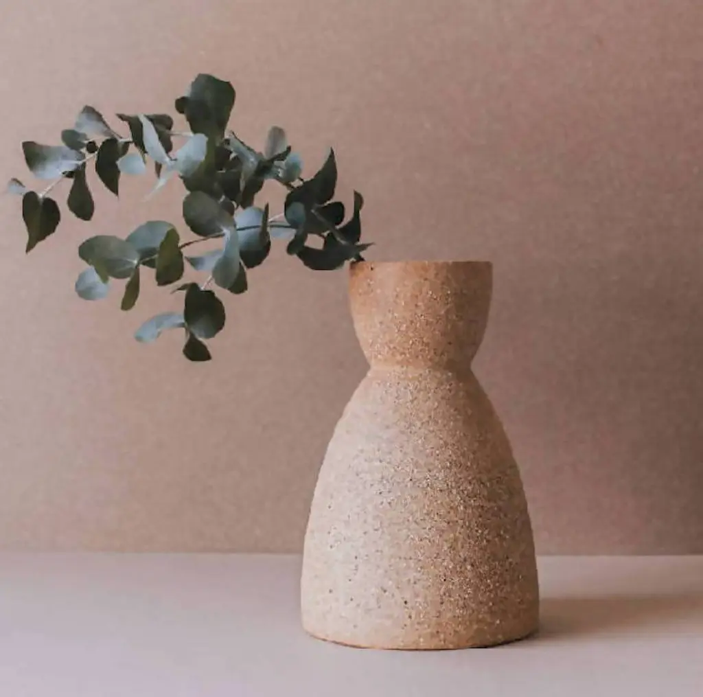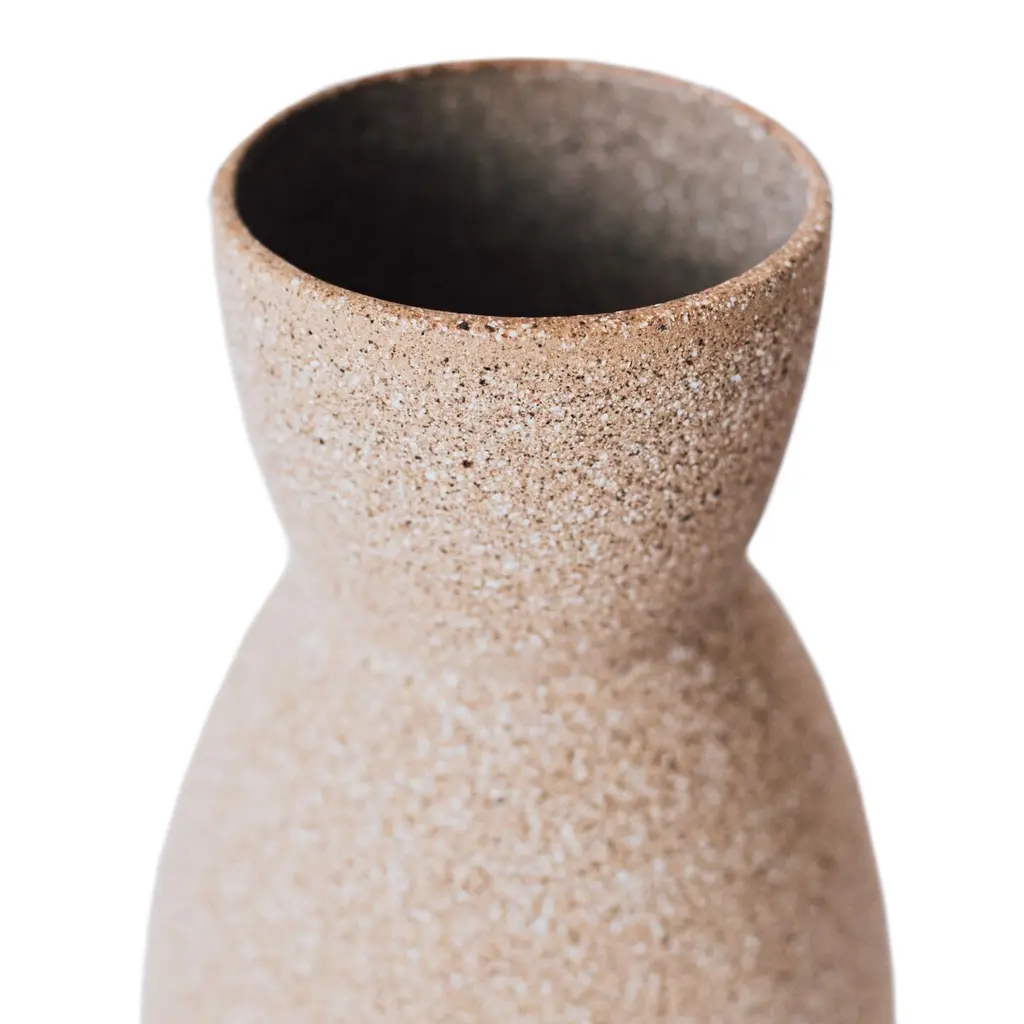 Handcrafted ceramic vase made with a mixture of local clay. Inspired by the shape of an hourglass. Wheelthrown and glazed only on the inside. The final earth tones and textures are the result of the different combinations of clays exposed to the heat of the kiln fire. Al Centro Ceramica is a renowned Mexican company specializing in the production and distribution of exquisite handcrafted ceramic pieces throughout Jalisco and its surrounding regions. From beautifully sculpted vases to unique and food-safe drinkware, each piece is masterfully crafted and built to last. Fueled by an insatiable passion for the medium's versatility, captivating forms, and intricate processes, Al Centro have acquired a remarkable talent for unearthing and curating an array of one-of-a-kind pieces crafted by talented artisans and esteemed workshops. The culmination of these efforts is an awe-inspiring compilation of truly authentic, beautifully handcrafted objects that capture the essence of Mexican artistry.