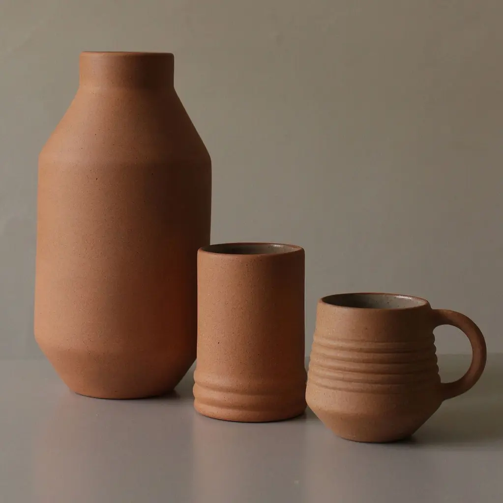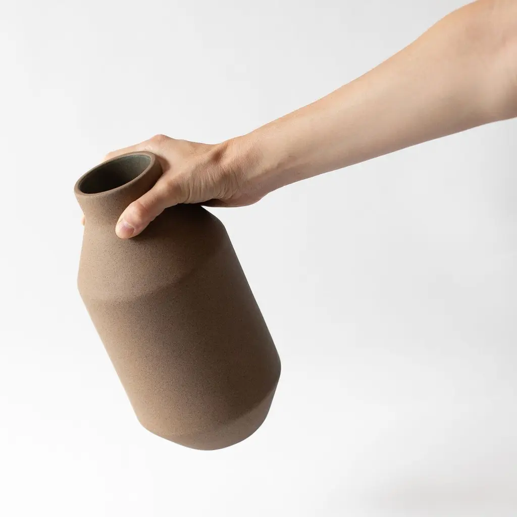 Handcrafted vase made with high temperature ceramic and local clay. Glazed only on the inside, the final earth tones and textures are the result of the different combination of clays exposed to the heat of the fire. Al Centro Ceramica is a renowned Mexican company specializing in the production and distribution of exquisite handcrafted ceramic pieces throughout Jalisco and its surrounding regions. From beautifully sculpted vases to unique and food-safe drinkware, each piece is masterfully crafted and built to last. Fueled by an insatiable passion for the medium's versatility, captivating forms, and intricate processes, Al Centro have acquired a remarkable talent for unearthing and curating an array of one-of-a-kind pieces crafted by talented artisans and esteemed workshops. The culmination of these efforts is an awe-inspiring compilation of truly authentic, beautifully handcrafted objects that capture the essence of Mexican artistry.