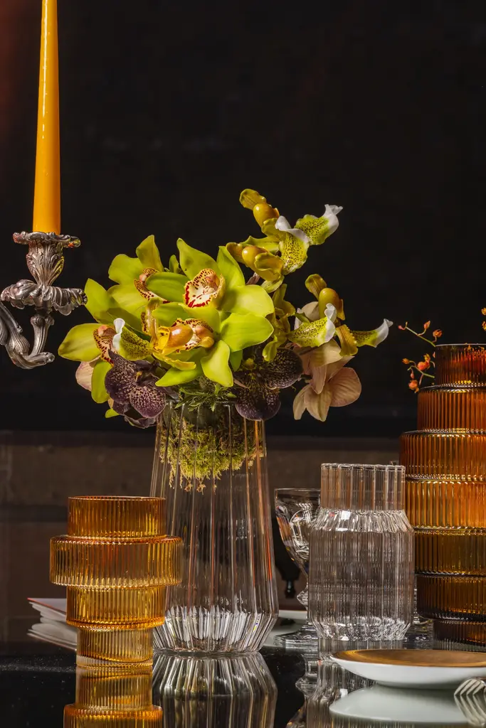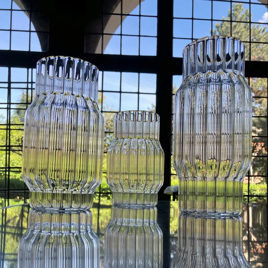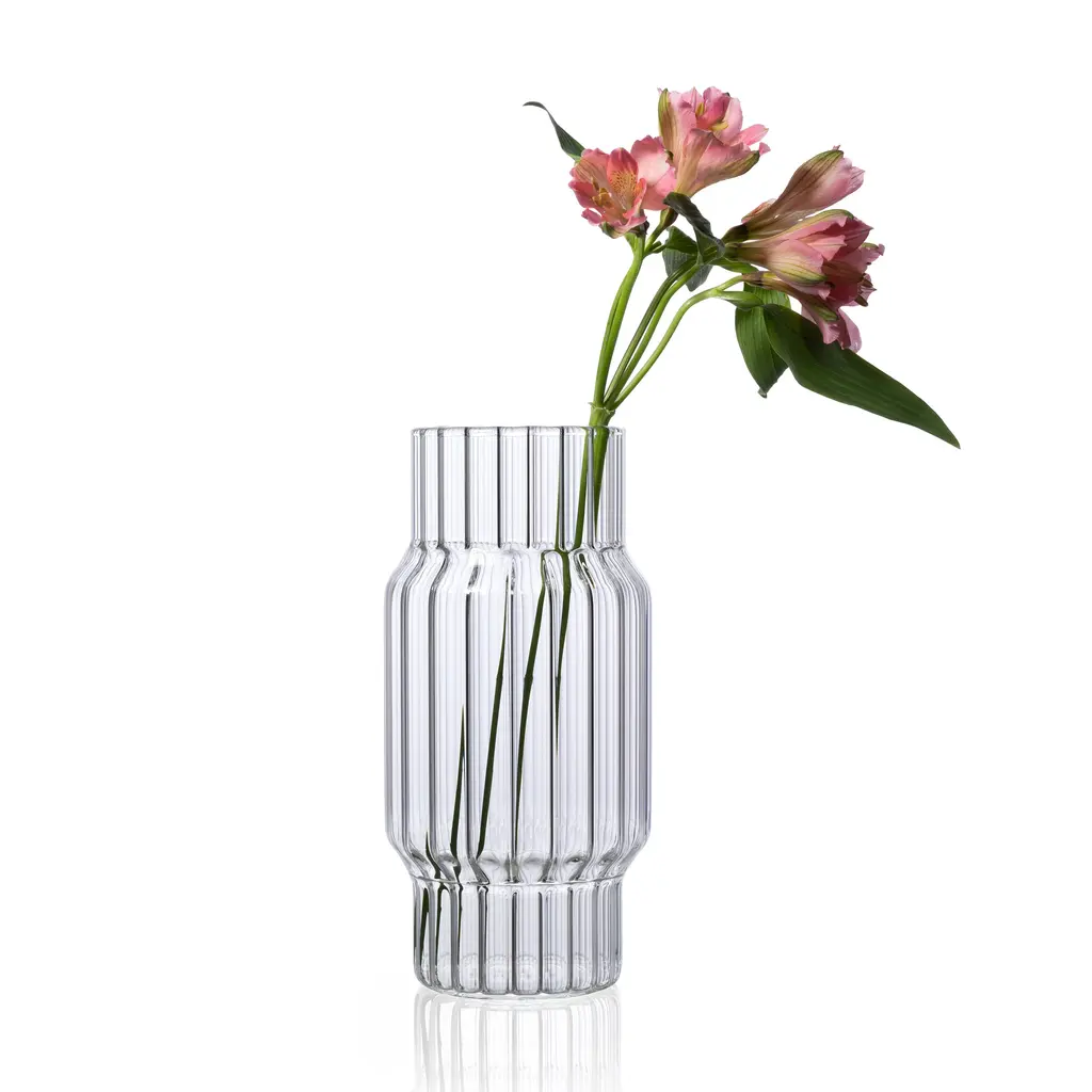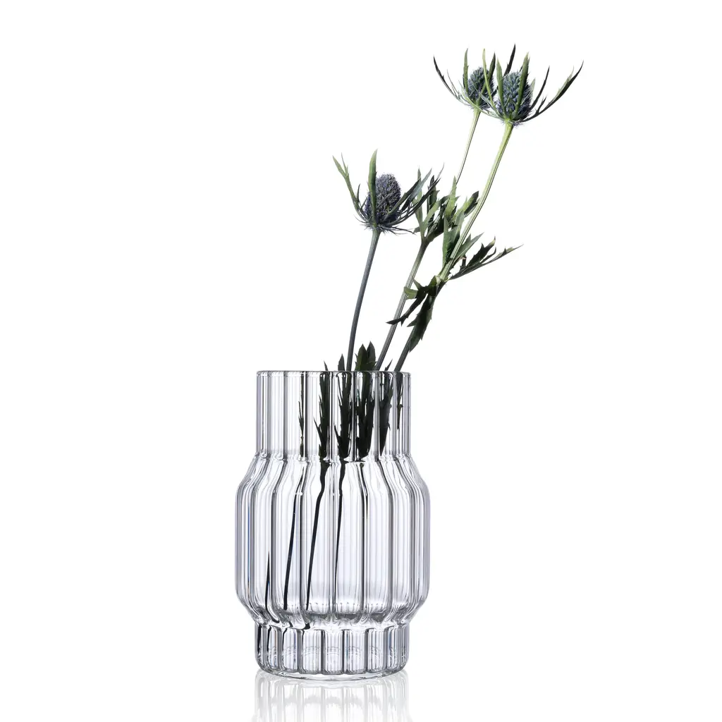 The original and unique style of the Albany Vases make a stunning choice to display blooming arrangements or a few lush plant clippings in your home or office. Whether it be a table setting, the foyer, bathroom, waiting room, or bedroom, any room can benefit from a great floral arrangement in these designer vases. Group their luxury Albany vases in a range of 3 sizes for a beautiful sculptural display. The Albany Vase Collection inverts tradition with the intricate fluting detail on the interior of the vase. The strong, simple lines of the vases make these perfect for any interior. With an innovative use of materials, the collection is made with the finest quality clear Borosilicate glass and without the use of molds. Features