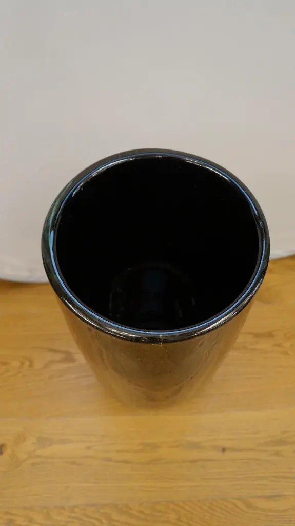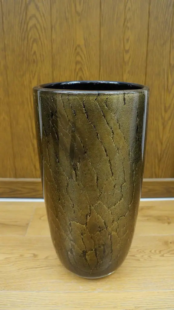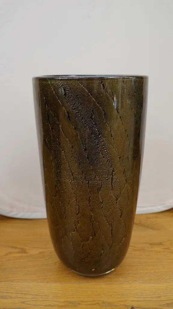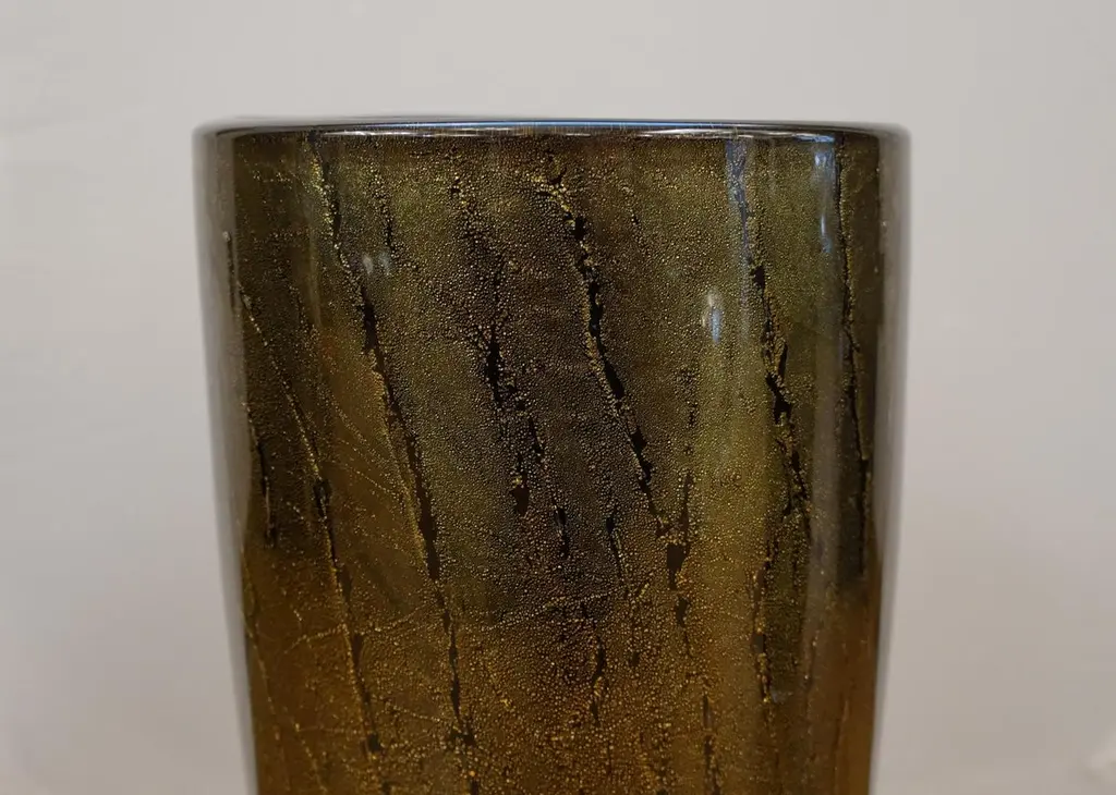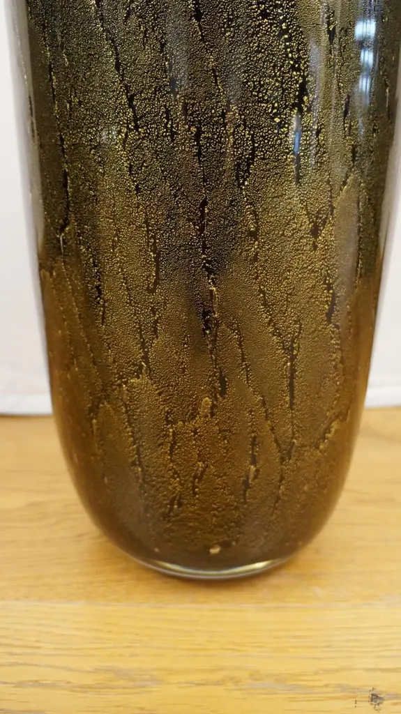 Two Murano glass blown vases, black color covered with 24-karat gold leaf.The vases are of thick glass.This fantastic Art Deco style artwork will add an extra touch of class to your environment.Project by Alberto Donà in 1990sVases signed with engraving: Alberto Donà Murano.Murano glass vases is a symbol of elegance and uniqueness, and it is a work of art that adapts to every need and acquires value over the years.