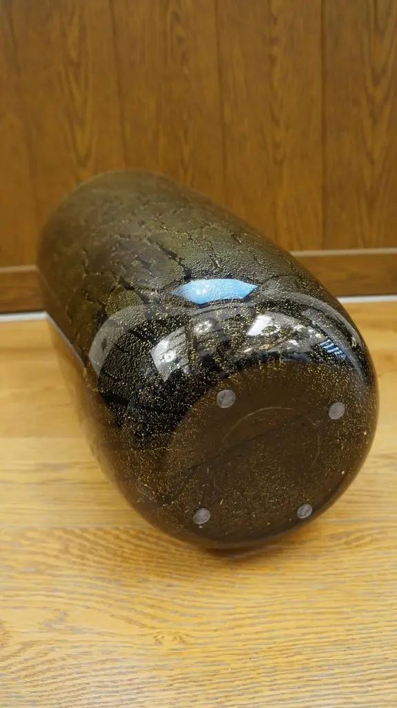 Alberto Donà Art Deco Black Gold Pair Of Murano Glass Vases Signed Jars, 1990s