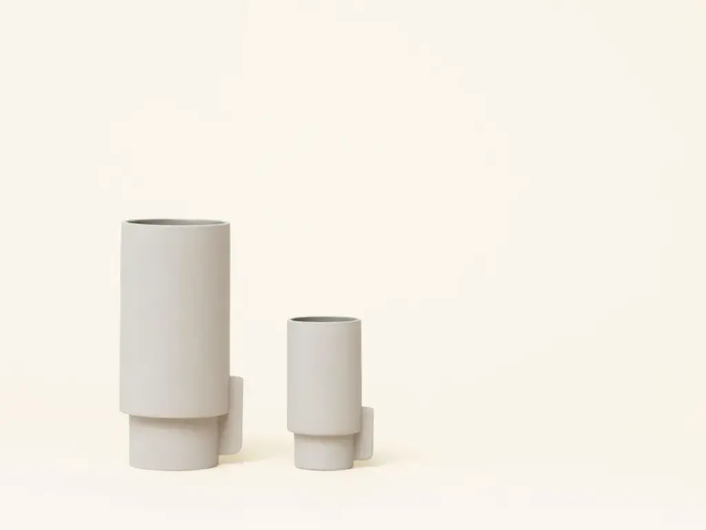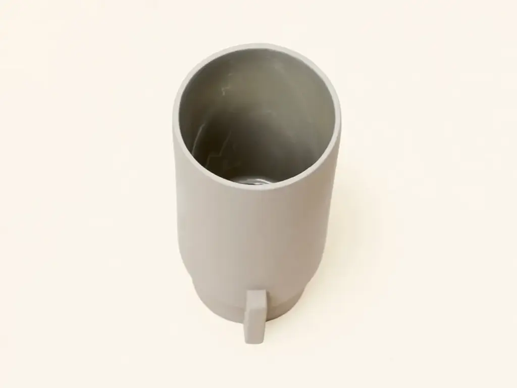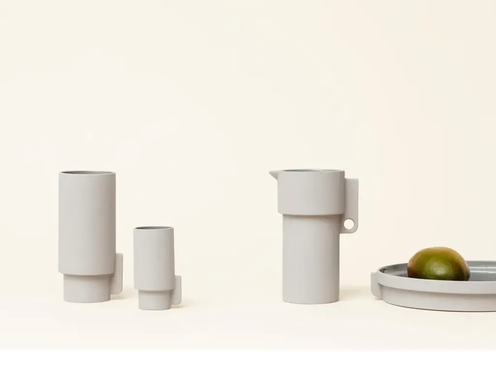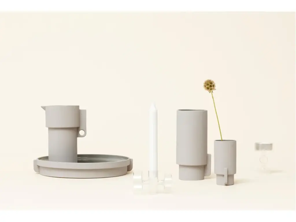 The Alcoa vase is clear and simple in shape, recognizable feature in all the elements of the collection. The surface is an matt grey on the outside, contrasted by a glossy grey on the inside. The name Alcoa refers to the region of Alcobaça in Portugal, cradle of the ceramic culture because it is rich in fine white clay. The Alcoa ceramics collection consists of vases in two sizes, a pitcher and a tray.“We took an analytical approach to the design, by applying two contrast properties of forms and colours. This is evident in the geometric lines that form the objects and the contrast used in the finished glaze with matt and high gloss." Herman Studio