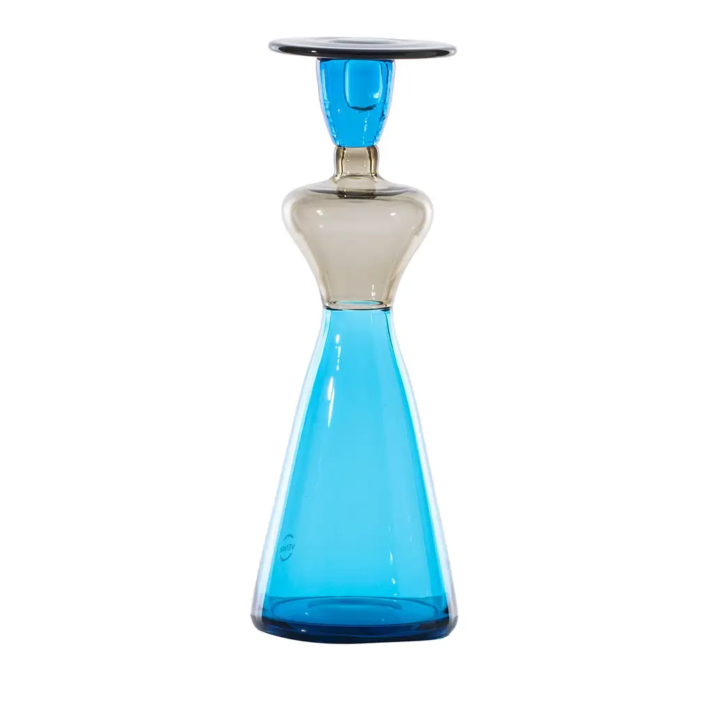 The Alcor Glass Vase was designed by Ettore Sottsass in 1983 for Memphis. Signed on the base. Ettore Sottsass was born in Innsbruck in 1917. In 1939 he graduated in architecture at the Politecnico di Torino. One of the most influential and important figures of the last century. As an Architect and Designer, he has participated in all radical movements whether created from the 1970s and 1980s. In 1981 he founded the Memphis group, a group that has radically changed the scenario of Italian and world design. Honored with numerous international awards, was winner of the Golden Compass in 1959. He designed the first laptop "Valentina" by Olivetti. He died in 2007 at the age of 90 years, however Memphis Milano continues and is the representation or Sottsass's great work and memory.Memphis Milano is the great cultural phenomenon of the 1980s that revolutionized creative and commercial logics in design. Born from the idea of Ettore Sottsass and a group of young designers and architects, in Milan, coupled in the years by famous designers from the international scene, Memphis turned upside down all of the existing parameters on living. Ettore Sottsass as the backbone of the group, design gained a new concept and expression through new shapes, materials and patterns, expanding the creative limits of the industry. Memphis became a symbol of New Design. Its influence is still clear in various sectors of production and beyond.Additional info:-Dimensions: H 19 inches-Materials: Glass-Due to the product material and production process, the colors and dimensions for this product may vary.-Pricing: Prices do not include VAT.- Purchased products are shipped with forms of authenticity by Memphis Milano. Glass and Silver items as well, contain an engraving which shows the signature of the designer, and the year which the product was originally designed in.