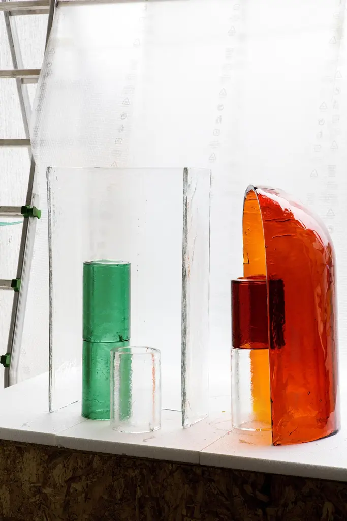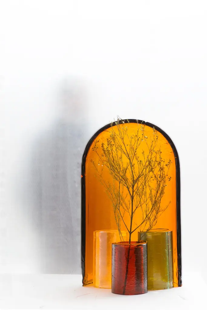 Alcova set 031 x Alcova Amber1 x Vaso L Crystal1 x Cilindro L Green1 x Cilindro S CrystalAlcova is a collection of handcrafted, geometric objects that when grouped create intimate landscapes. Ronan and Erwan Bouroullec describe the collection as follows: “The Alcova collection is a series of coloured cast glass geometrical shapes that are organically composed. We approached this project in a brutal and primary way, working with the thickness of the material and letting the process guide us, seeking to preserve all the magic of the ballet of molten glass manipulated by master glassmakers.”Please note, measurements provided are subject to composition display. See below precise measurements for each separate element.Dritto Short W 700 x D 200 mm x H 500 mm 27 Kg Alcova W 400 x D 200 mm x H 800 mm 24 KgDritto Tall W 500 x D 200 mm x H 800 mm 35 Kg Cilindro S/L Ø 120 / 160 x H 240 mm 4.5 Kg / 6.5 Kg Vaso S/L Ø 120 / 160 x H 250 mm 5 Kg / 7 Kg.