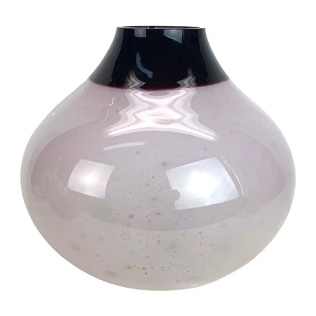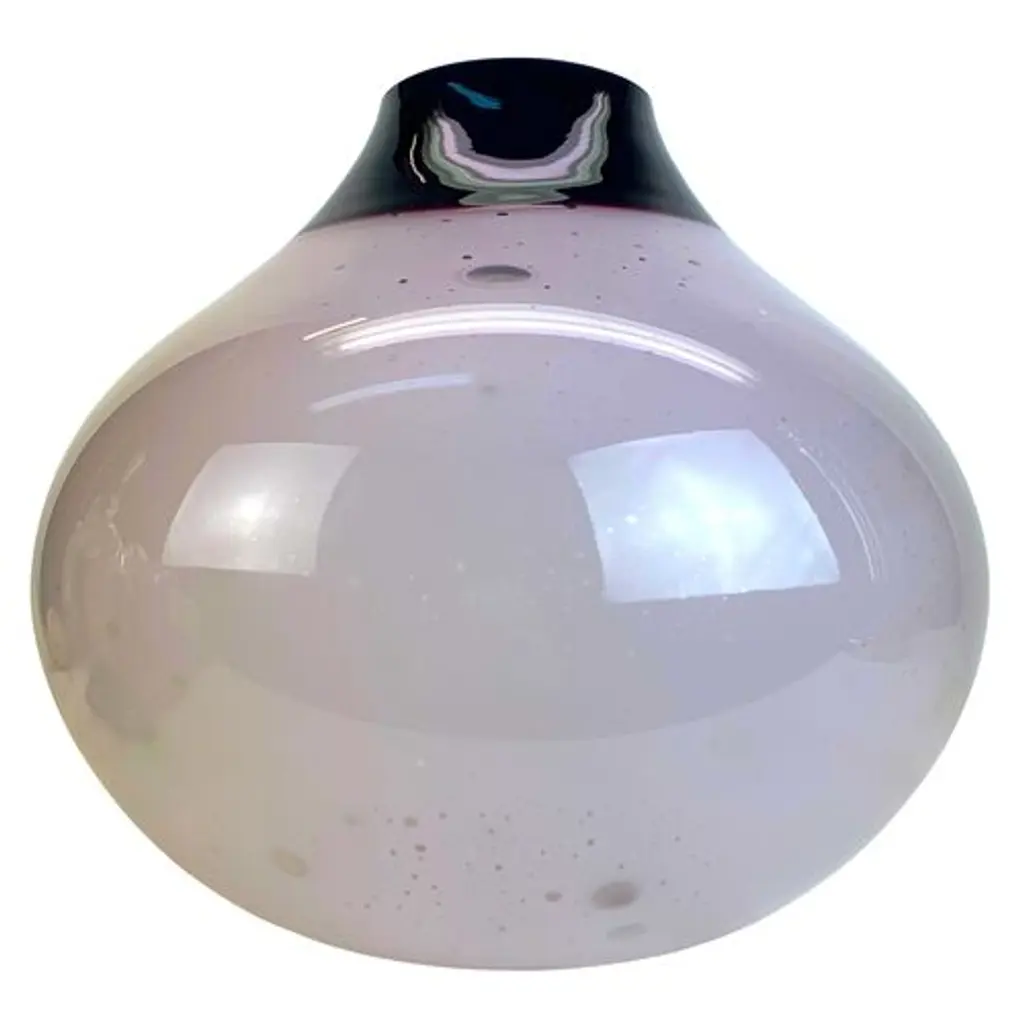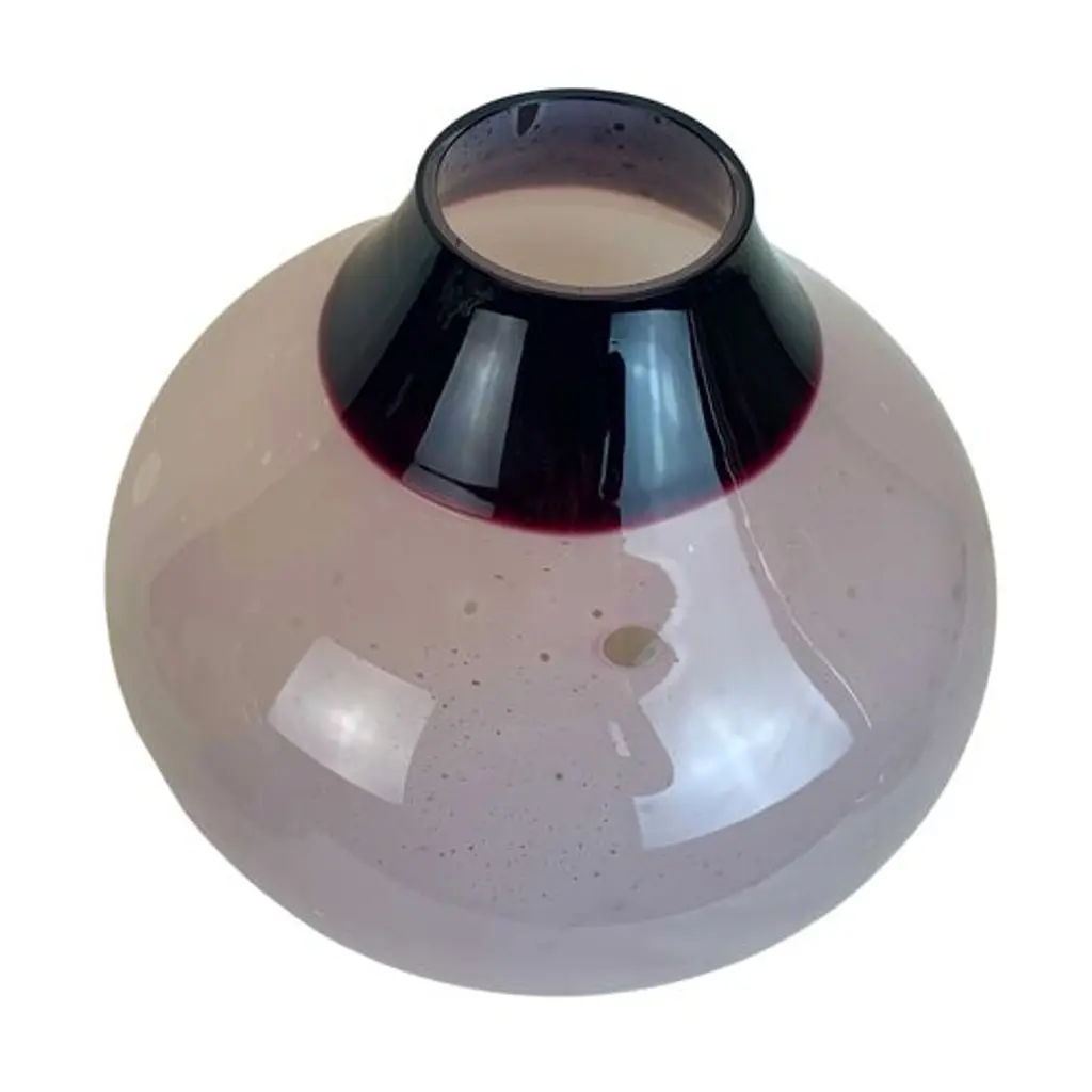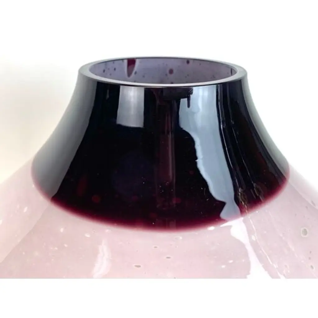 Large-scale hand-blown Alfredo Barbini Murano glass pink & burgundy wine colored bulbous vase in the "cluthra" glass-blown style with layers of trapped bubbles. Hand etched/signed "Barbini Murano" towards bottom. Glass in excellent condition, felt pads on bottom show wear/age.