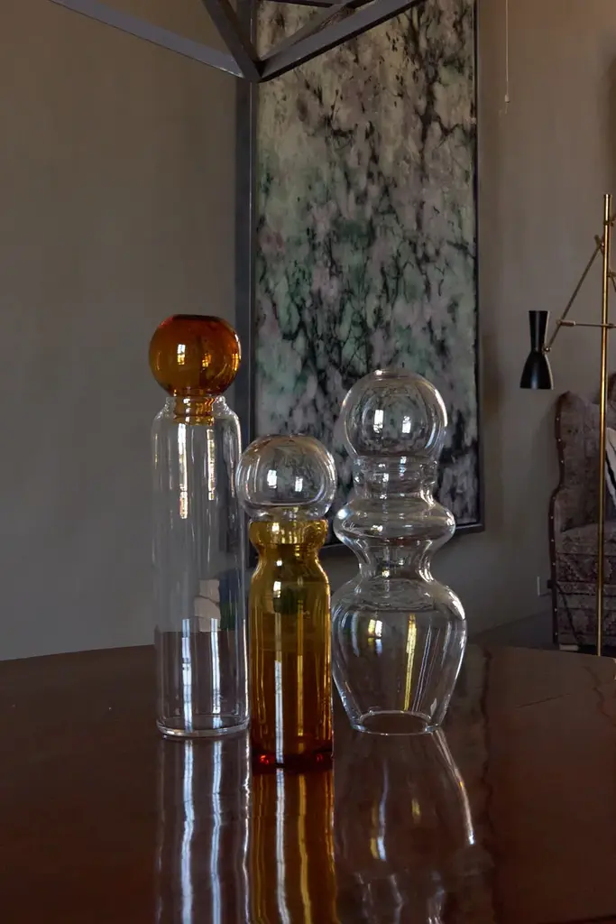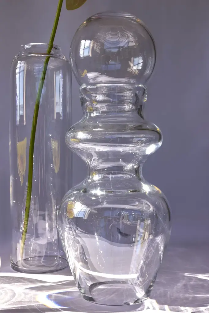 ALICUDI is a blown glass vase.It is a combination of three pieces: the cap, the vase and the inner glass.That can serve both as a sculptural crystal piece and as a vase for hydroponics. A piece of crystal artfully created with the traditional hand-blowing technique. The purity of the light, illuminating the interior in which it is placed. Variations in color or small details are the result of the craftsmanship of this article and make each piece unique.Featureshand-blown and shaped in Italy3 pieces: removable round cap, vase, inner glasscolor: transparentmaterial: pure lead crystal glass