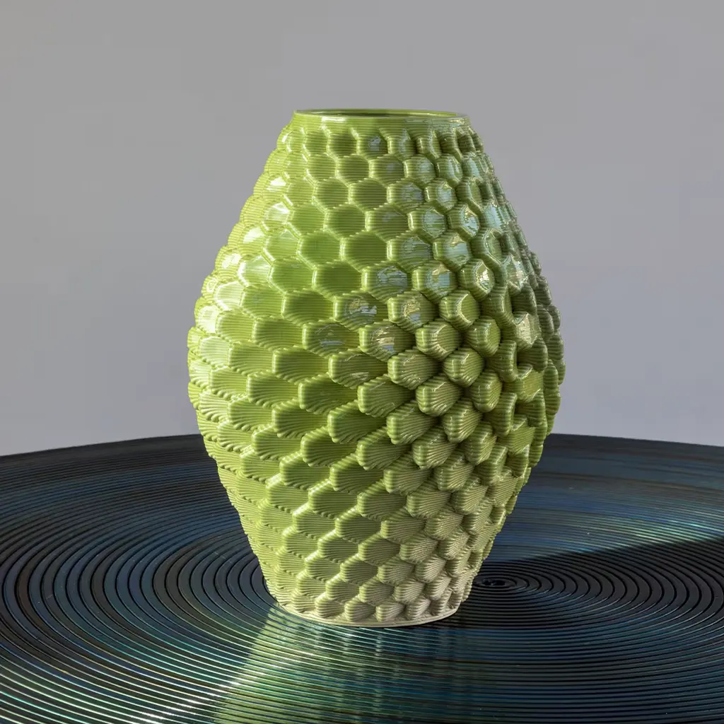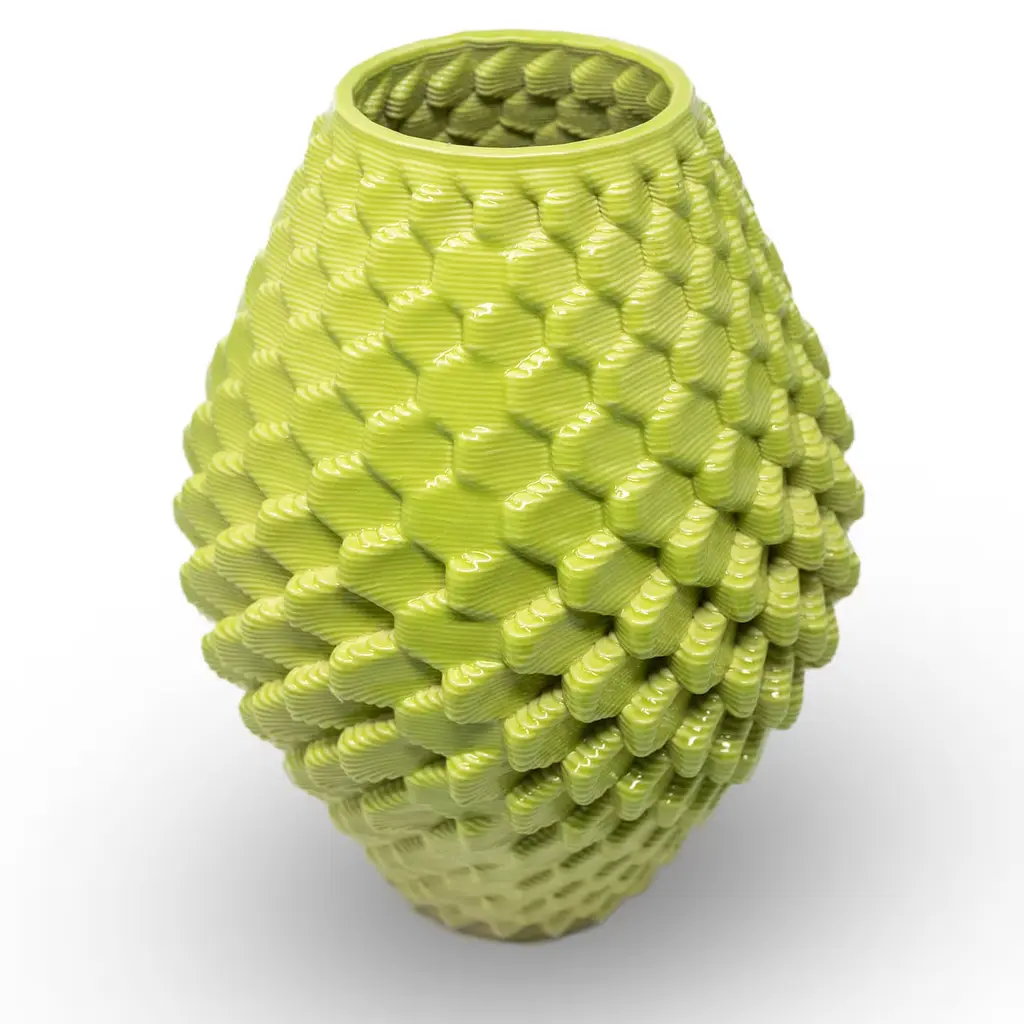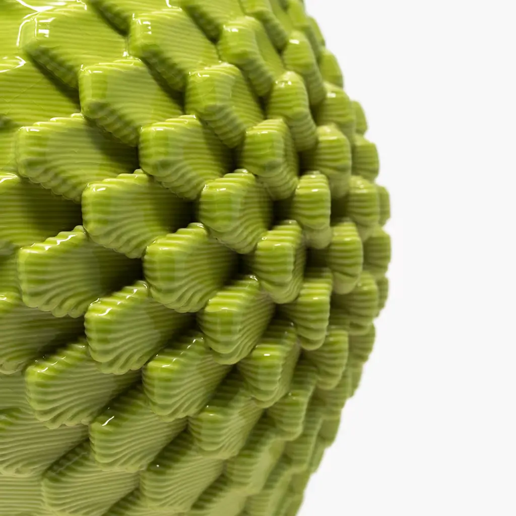 Alma, a 3D-printed vase, draws from the Caltagirone pine cone's shape, symbolizing vitality and eternity. Combining digital artistry, craftsmanship, and nature, it embodies Sicilian allure. Reflecting the fertility of the mind and novel ideas, Alma is shaped by Descartes' link between the pine cone form and the pineal gland. Additive manufacturing brings its organic silhouette to life, enhancing its essence for unique charm in spaces. Please, ask the Concierge service for further information.