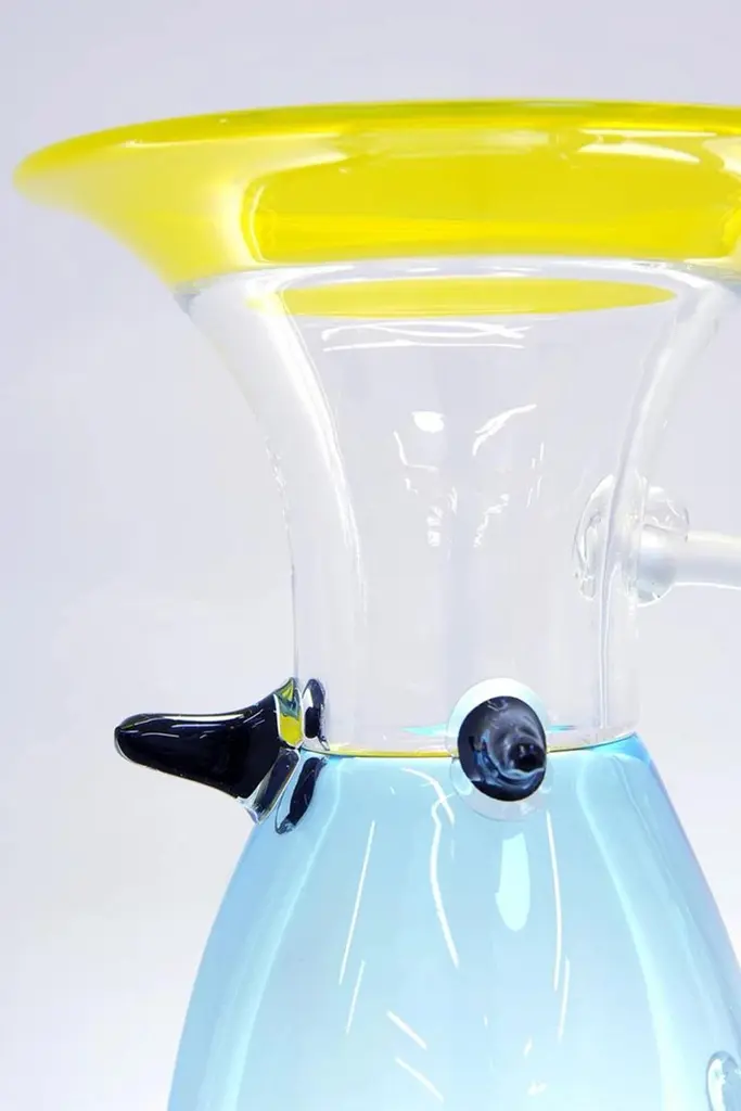 The Altair Glass Flower Vase was designed by Ettore Sottsass in 1982. Signed on the base, please see below for further information. Ettore Sottsass was born in Innsbruck in 1917. In 1939 he graduated in architecture at the Politecnico di Torino One of the most influential and important figures of the last century, Architect and Designer, he has participated in all radical movements whether created from the 1970s and 1980s. In 1981 he founded the Memphis group, a group that has radically changed the scenario of Italian and world design. Honored with numerous international awards, was winner of the Golden Compass in 1959. He designed the first laptop "Valentina" by Olivetti. He died in 2007 at the age of 90 years, however Memphis Milano continues and is the representation or Sottsass's great work and memory.Memphis Milano is the great cultural phenomenon of the 1980s that revolutionized creative and commercial logics in design. Born from the idea of Ettore Sottsass and a group of young designers and architects, in Milan, coupled in the years by famous designers from the international scene, Memphis turned upside down all of the existing parameters on living. Ettore Sottsass as the backbone of the group, design gained a new concept and expression through new shapes, materials and patterns, expanding the creative limits of the industry. Memphis became a symbol of New Design. Its influence is still clear in various sectors of production and beyond.Additional info:- Dimensions: H 17.25 inches- Materials: Glass- Due to the product material and production process, the colors and dimensions for this product may vary.- Pricing: Prices do not include VAT.- Purchased products are shipped with forms of authenticity by Memphis Milano. Glass and Silver items as well, contain an engraving which shows the signature of the designer, and the year which the product was originally designed in.