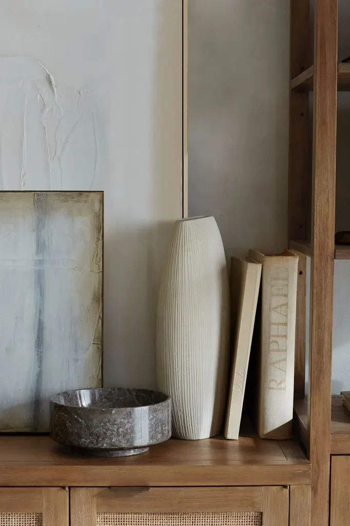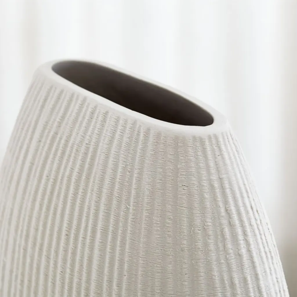 Textured lines enliven the surface of this graceful tall vase of cream-colored porcelain. Pair with the other off-white vases in our exclusive Alura collection for sculptural impact.