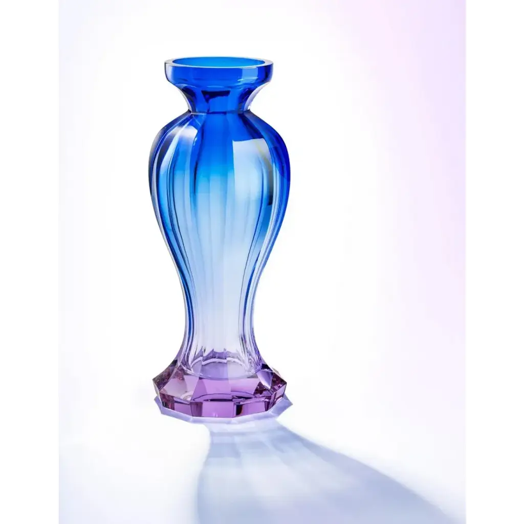 Amalfi Alexandrite Blue Lead-Free Crystal, Cut On 10 Edges Underlaid Vase 33,0 Cm