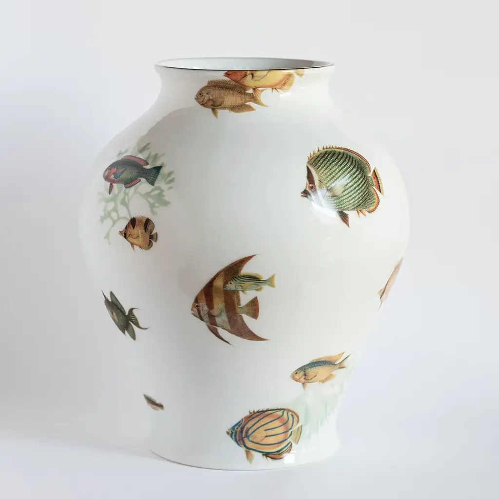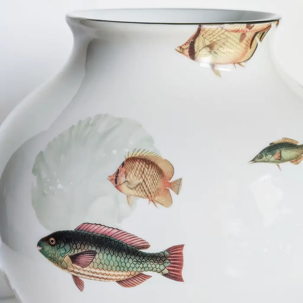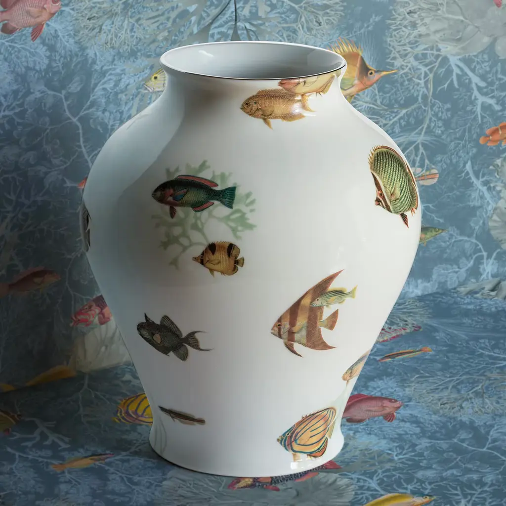 Amami Amphora Porcelain Vase With Tropical Fish H27cm