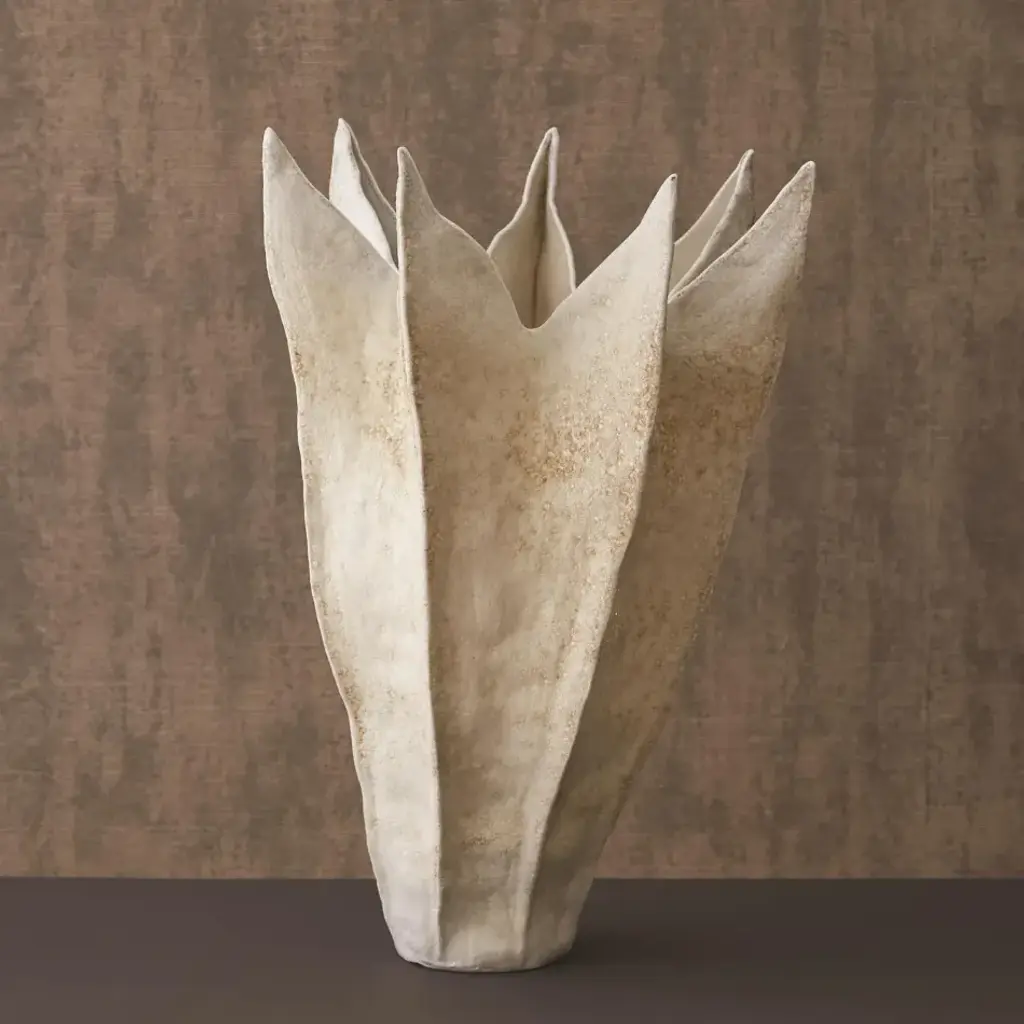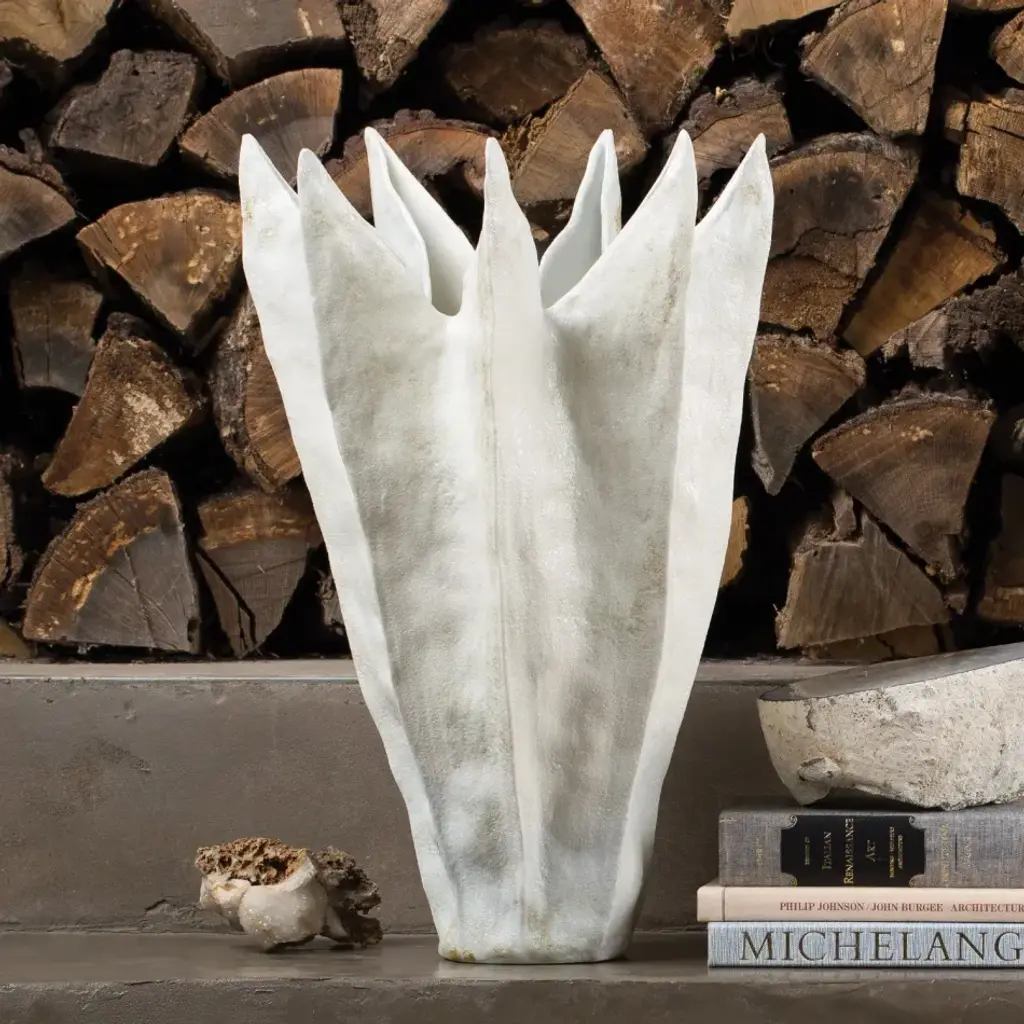 Tall and dramatic, just like the flower from which it was named. The original 23-inch porcelain vase was hand-formed by a Portuguese ceramic artist who created it exclusively for Studio A Home. It became the master from which each of these exquisite free-form vases is made. From a fashion forward perspective, Global Views offers accessories, furniture, statement lighting, and an assortment of rugs and mirrors to add beauty and joy to your home.