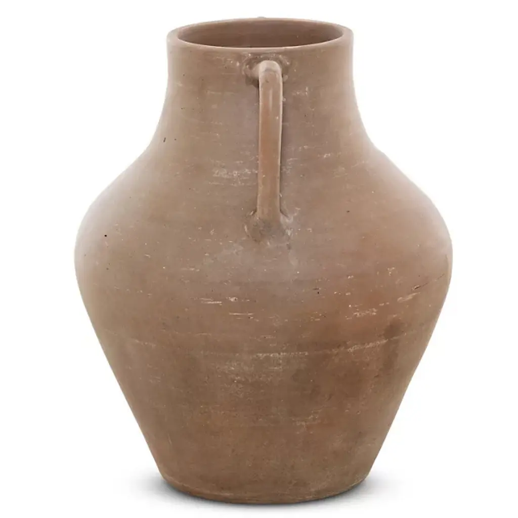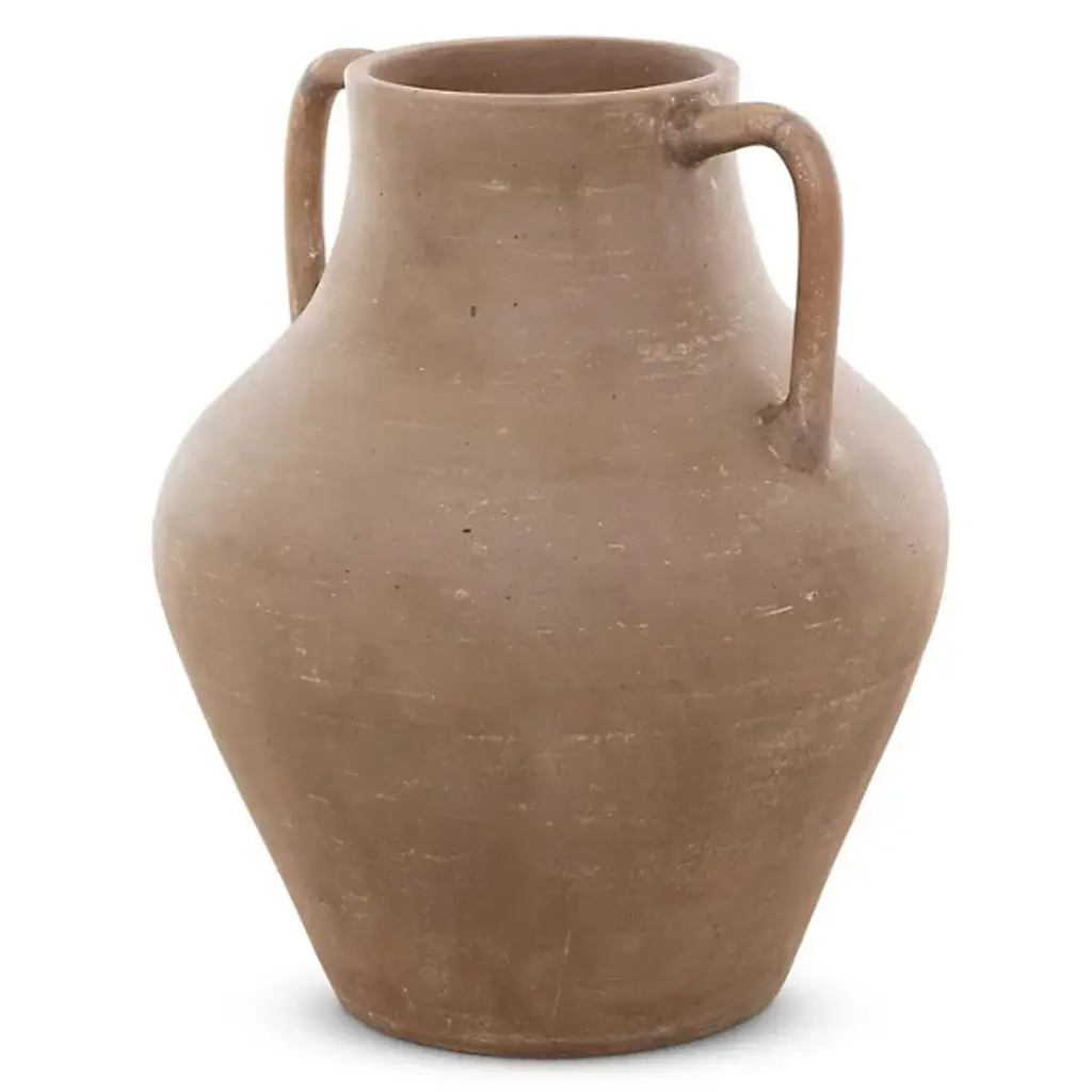 The Amber Lewis x Four Hands Atrani Vase from Four Hands presents a timeless design reimagined through a contemporary viewpoint. Classical charm intersects with modern allure in the form of its striking two-handled silhouette and rough-surfaced terracotta material, adding a rustic edge to any space. The design evokes classical forms with its simple silhouette, narrowing from a broader base that converges to a central opening, offering a timeless aesthetic with a contemporary twist. Crafted from terracotta, this collaborative effort by Amber Lewis and Four Hands is a versatile, textured decor piece that matches old-world elegance with simple design elements.