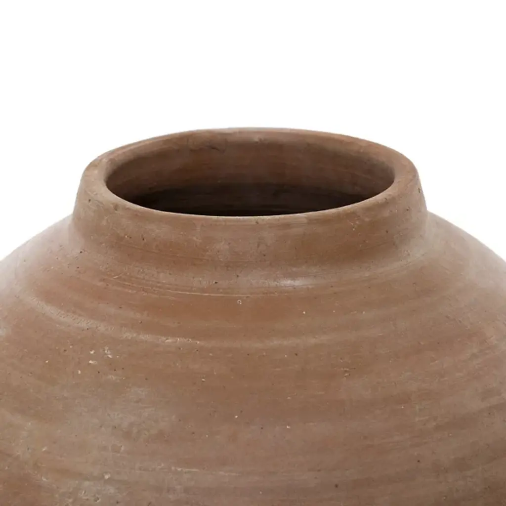 The Amber Lewis x Four Hands Bosa Vase from Four Hands delights viewers using a contemporary design with a classic genesis. Its soothing silhouette and textured terracotta material pair classical allure with modern charm, lending a rustic touch to any setting. The vase's simple yet elegant form, crafted from terracotta, expands upward from a circular base, curving inward to a central opening, evoking timeless sophistication with a fresh twist. The vase becomes versatile decor by combining a sense of historical intricacy with minimalist simplicity, adding tasteful texture and unique character to any space.