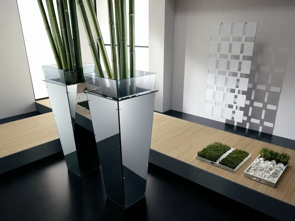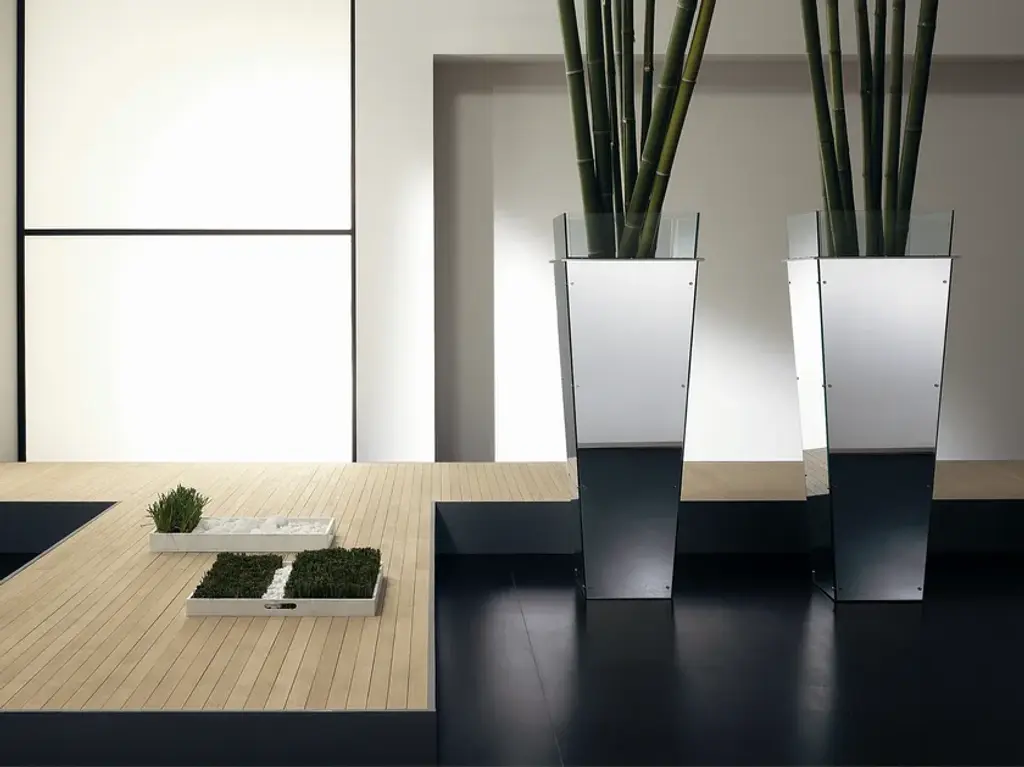 Amon is available in a variety of sizes and finishes, including lacquered glass, mirror, ebony, rosewood and other wood and leather. A lighting system for the glass is also available Size: 58 x 58 x h.160 cm 58 x 58 x h.120 cm 58 x 58 x h.80 cm Thickness: 8 mm Load: 15 kg