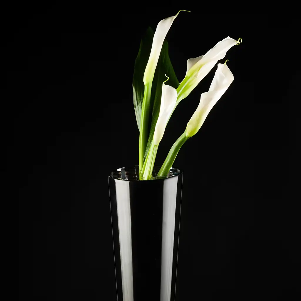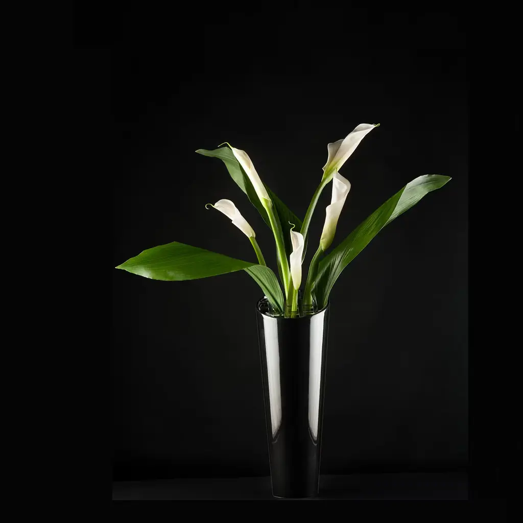 A smaller version of the 100cm-tall sculpture "Hard Waffle" created in 1996 by Ignazio Romeo, this vase boasts a monolithic profile of sleek modern flair. Crafted of black-enameled ceramic, this design is completed with an iron grid covering the opened top. The grid is laser-cut and finished by hand in a polished oxidized hue, available also with natural finish on request. The oxidation is naturally obtained when it rains or with a solution of salt, water, and a secret ingredient, creating earthly shades ranging from dark tones to a vivid orange.