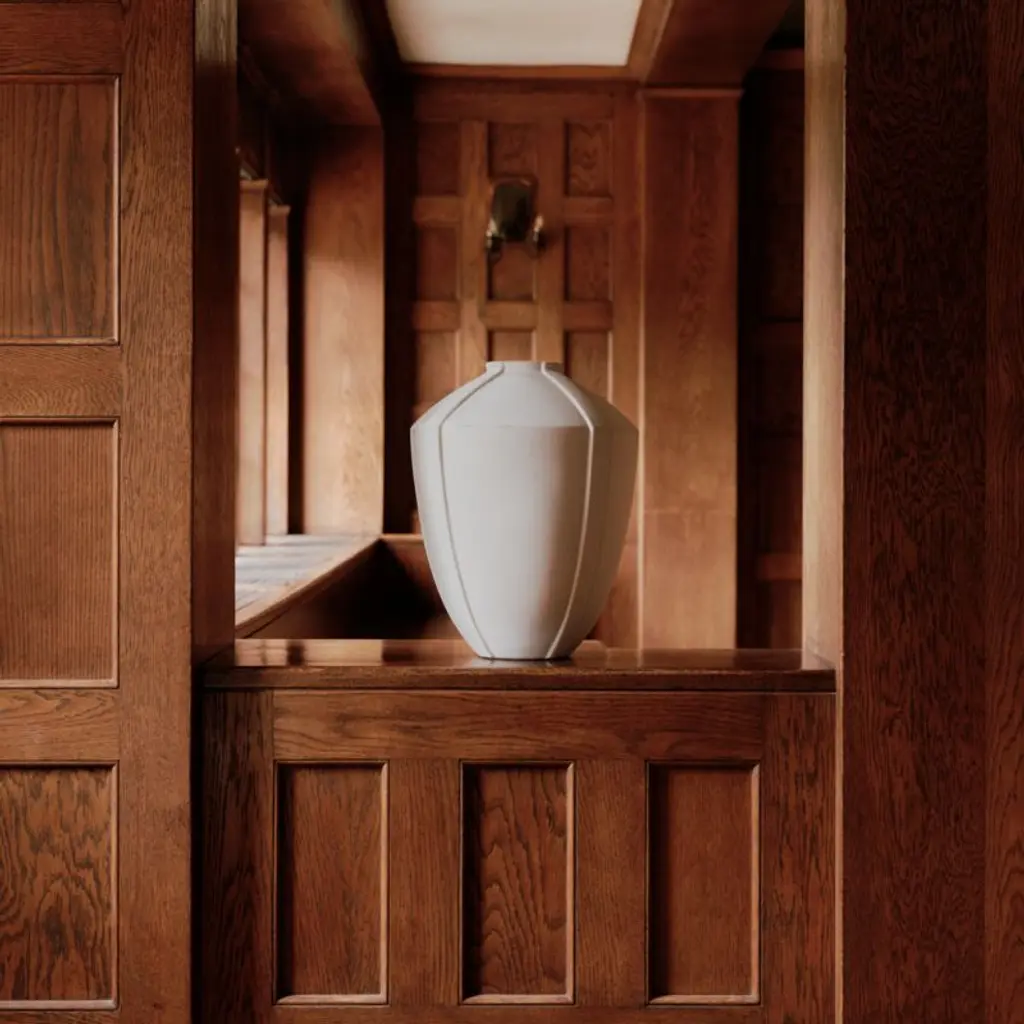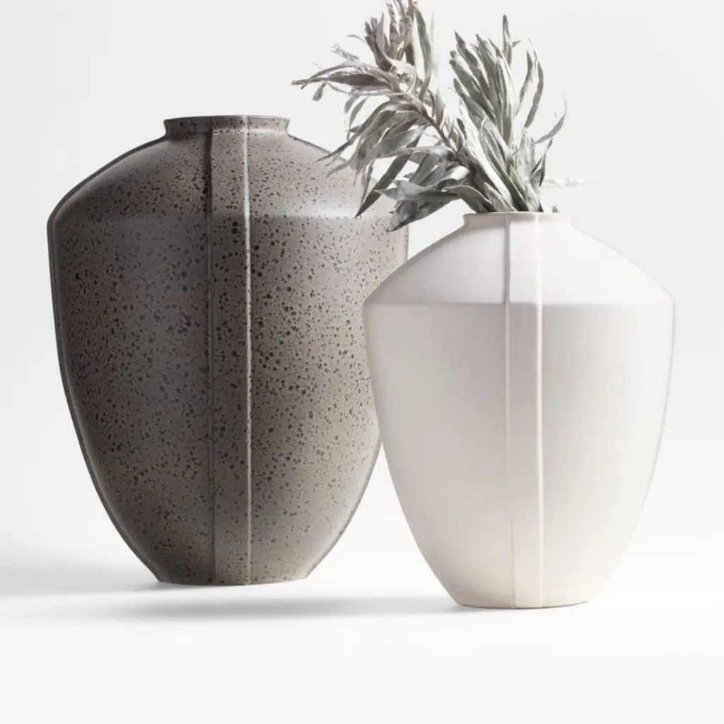 Inspired by ancient amphorae as well as Old-World glamour, Athena Calderone updates classical proportions with a fascinating reactive glaze. The lustrous cream finish makes each earthenware vase unique. Detailed with raised strapping that lends subtle dimension, Ancien has major presence on its own or filled with our faux branches. Pair with the speckled brown larger version for a coordinated sculptural display.Our collaboration with interior designer and bestselling author Athena Calderone brings you a collection of pieces that honor refined and elegant forms. Inspired by the timeless shapes and palettes of the 1930s, Crate x Athena fine-tunes scale, elevated materials and comfort to fit seamlessly into your home.