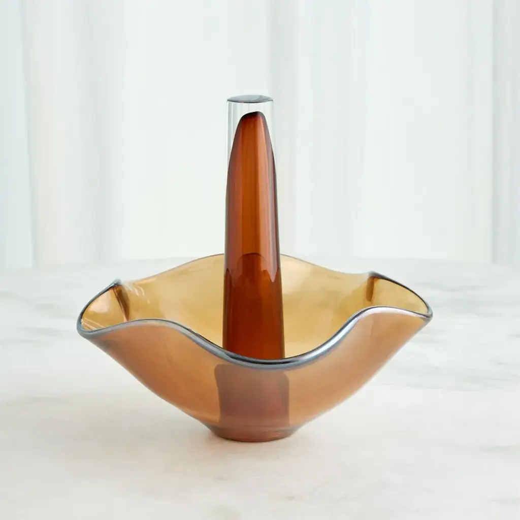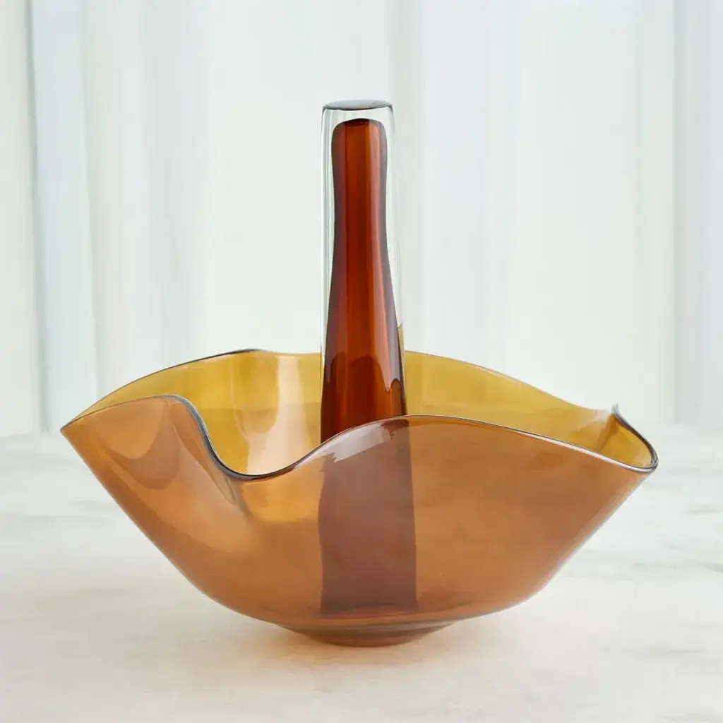 The Andromeda Vases are truly stunning works of art. These vases are handcrafted from hand-blown Polish art glass, where clear and amber glass layers come together to create a captivating effect. The leaf detail is meticulously hand-pulled, adding a unique touch to each vase. These vases not only serve as a remarkable showcase for your floral arrangements but also stand as unique decorative pieces on their own. From a fashion forward perspective, Global Views offers accessories, furniture, statement lighting, and an assortment of rugs and mirrors to add beauty and joy to your home.