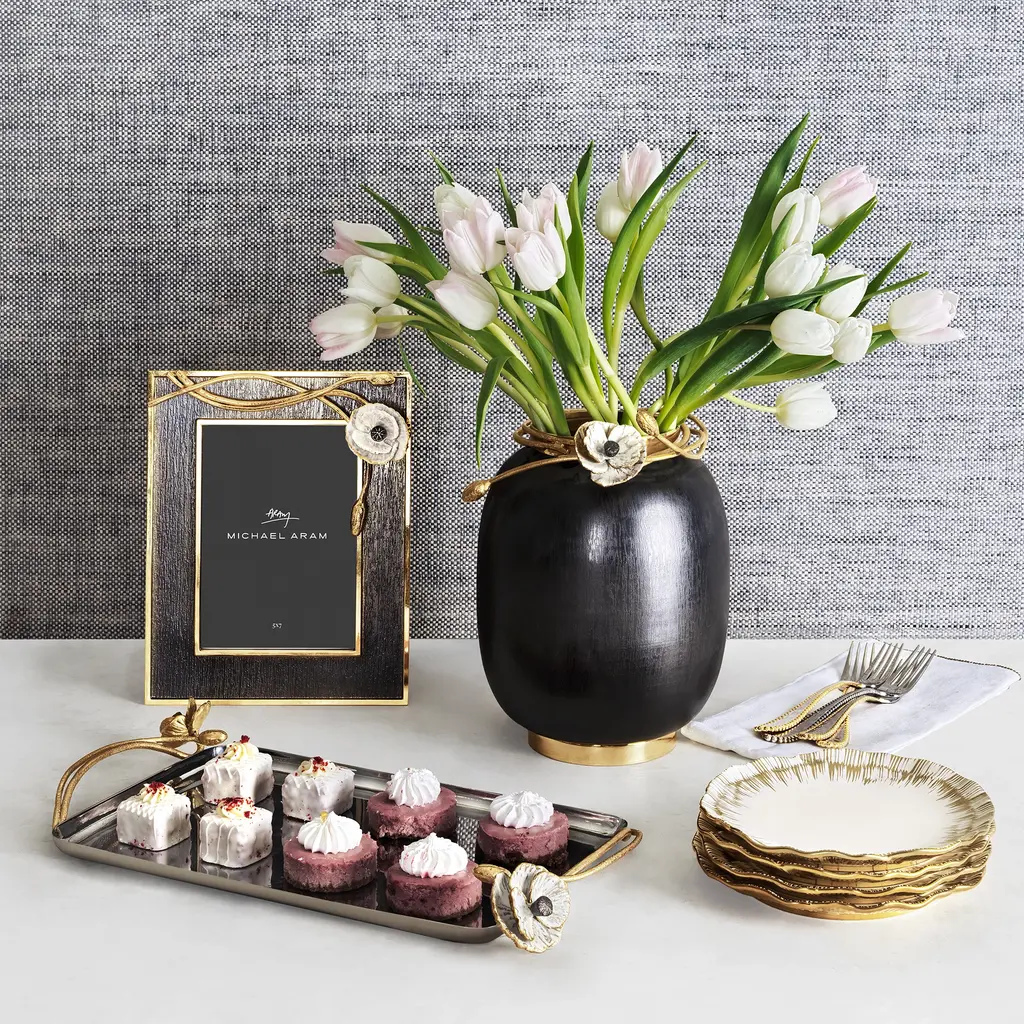 A celebration of nature and craftsmanship, the Michael Aram Anemone Collection reinterprets the anemone flower in cast metal and other materials to create entertainment and décor pieces for your home. Each object is a fusion of organic form and the alluring, imperfect beauty associated with the handmade process.