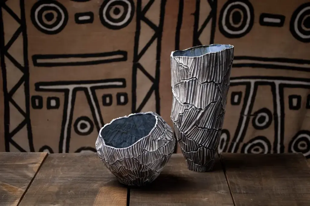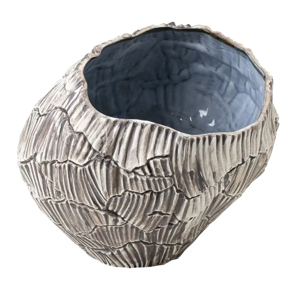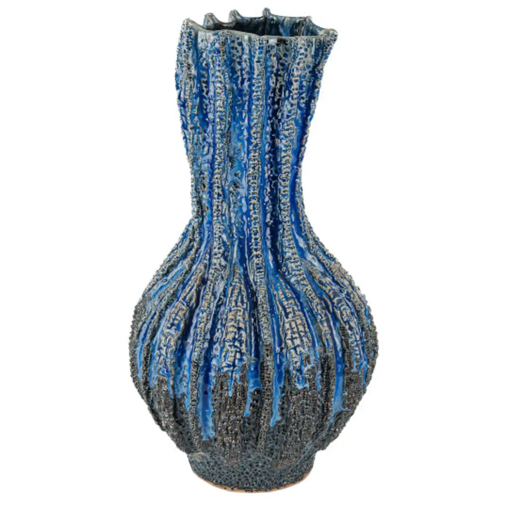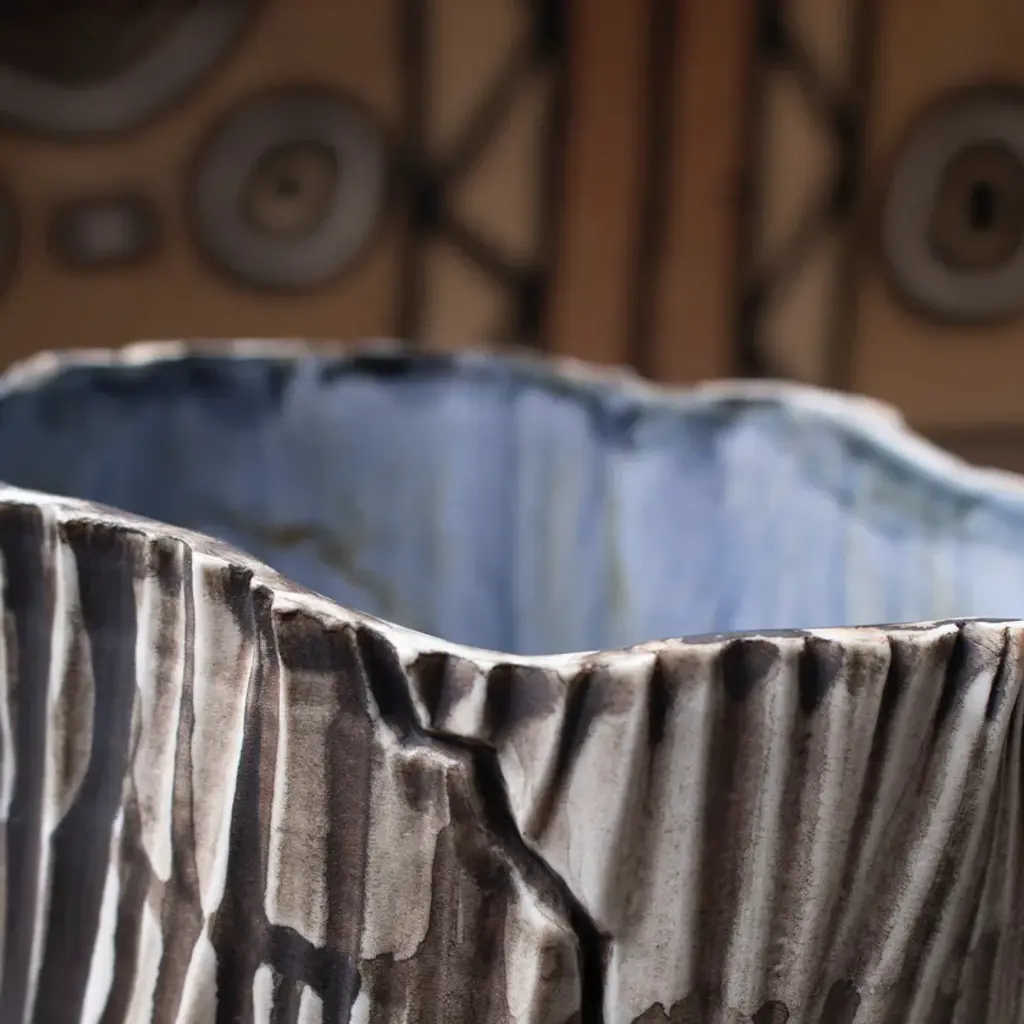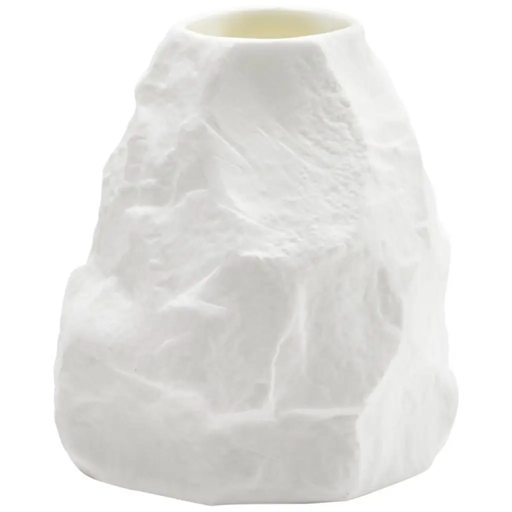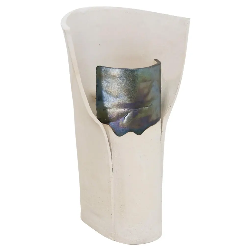 Anemos Rock is a vase made of porcelain. The soft curves of canals shaped by wind create a unique rhythm on the surface, interrupted by deep cracks, like a dry land which discloses a precious secret. The use of metal oxides, obtained through a long and meticulous research, gives the objects rocky colors with unique and unrepeatable shades.