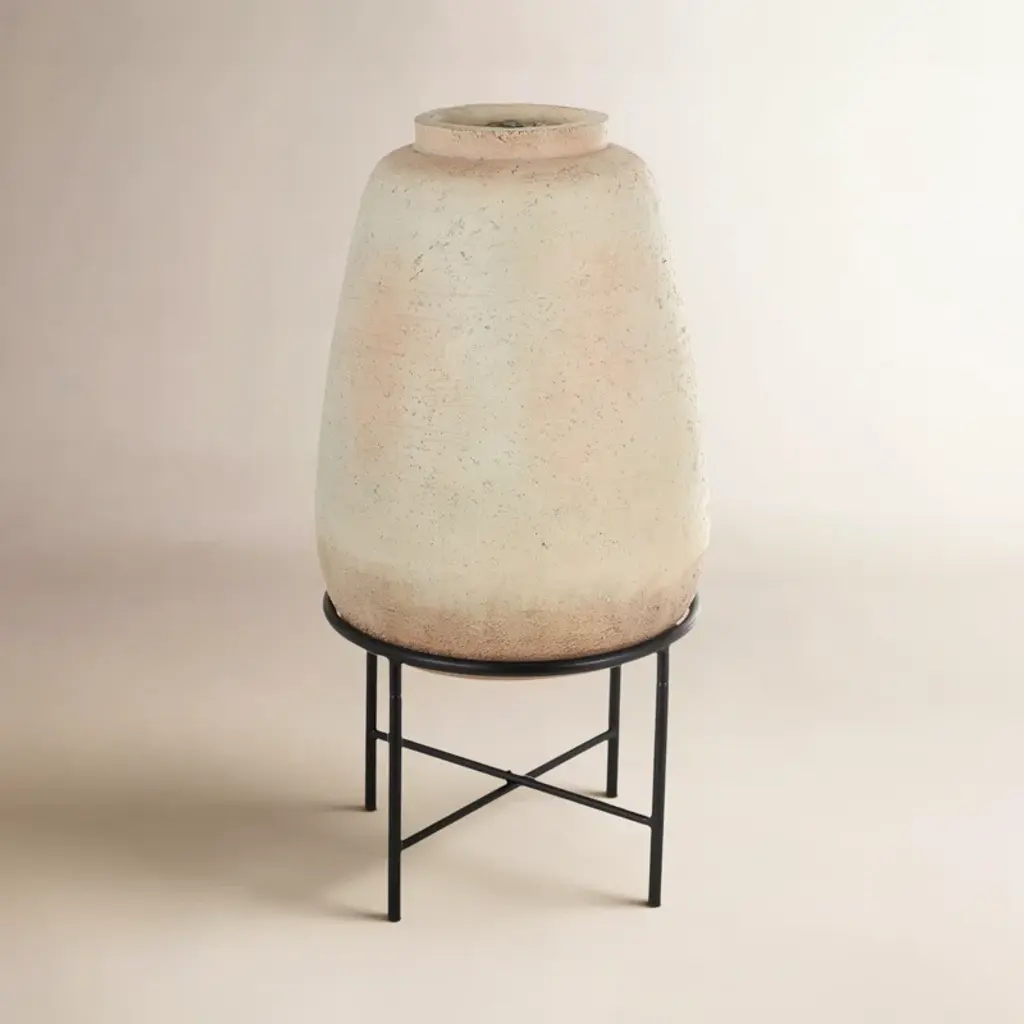 Founded by Raquel Vidal & Pedro Paz, Canoa Lab is a contemporary ceramics studio rooted in the classics. Inspired largely by archaeology and ancient Mediterranean vessels, the studio experiments with unique casting, coiling, and glazing techniques to offer a contemporary reinterpretation of timeless forms. Each piece is delicately handcrafted by the designers in their studio based in Valencia, Spain. The stoneware vase in handmade to order by the Valencia-based studio, Canoa Lab.