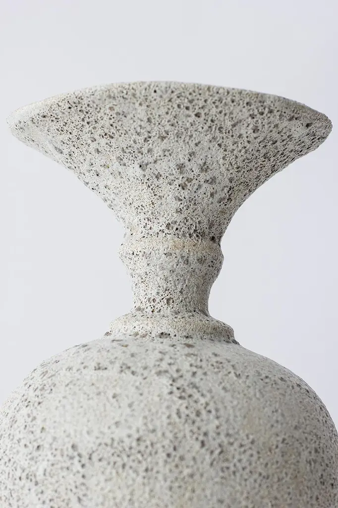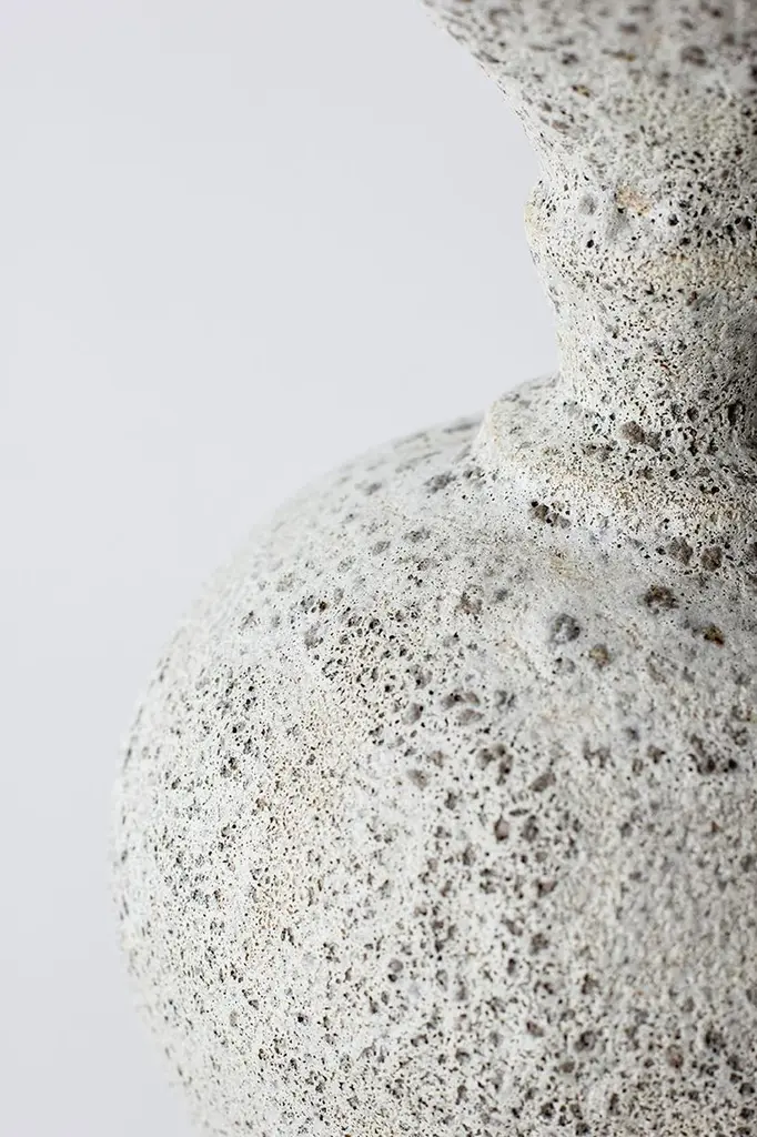 Anfora Granito glaze stoneware vase, Raquel Vidal and Pedro PazDimensions: 28.5 x 16 cmMaterials: hand-sculpted, glazed potteryRaquel Vidal and Pedro Paz craft pottery and jewelry that seeks to preserve ancient techniques and aesthetics. Their work is defined by a deep respect for materials, metal and clay being the primary raw materials with which they work. Both of these elements have been used since the beginning of humanity to not only make tools and supplies but also for creating objects to contemplate and connect with our bodies and environment. Pottery and jewelry have worked together in each society’s development, mutating and showing the interests, needs and concerns of a given era.Raquel and Pedro believe these ancient arts also help us understand our ancestors, get closer to them and experience how they felt materials and shapes. The material connections between metal and clay are also of interest. Both materials have long and slow production processes and an intimate connection with fire, a somewhat rebel and magic element, that humanity has always craved to control.This belief that materials and the processes applied to them can transform the artist into a restorer of old sensibilities is foundational for Raquel and Pedro. Every piece is crafted slowly and methodically, there is no rushing in the process, and with a respect for the natural world’s own "will" to produce its own results.