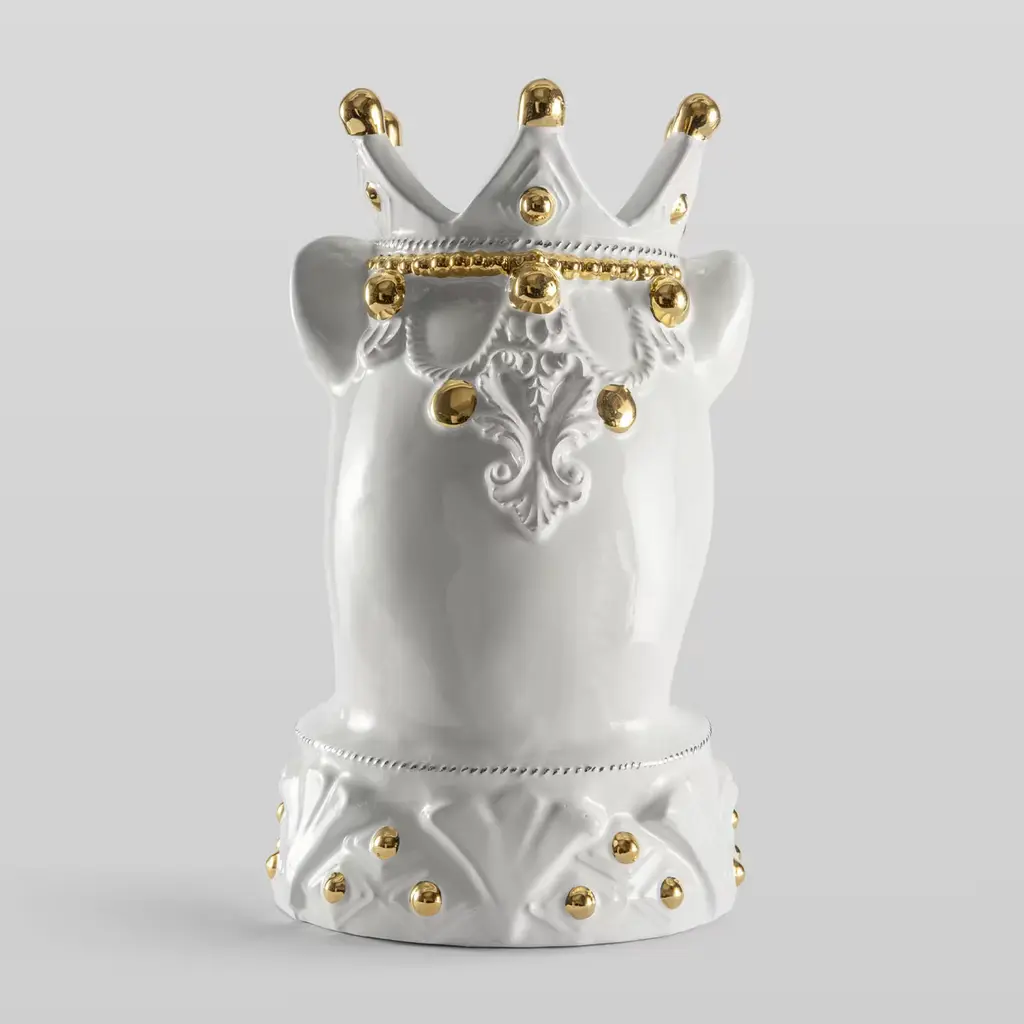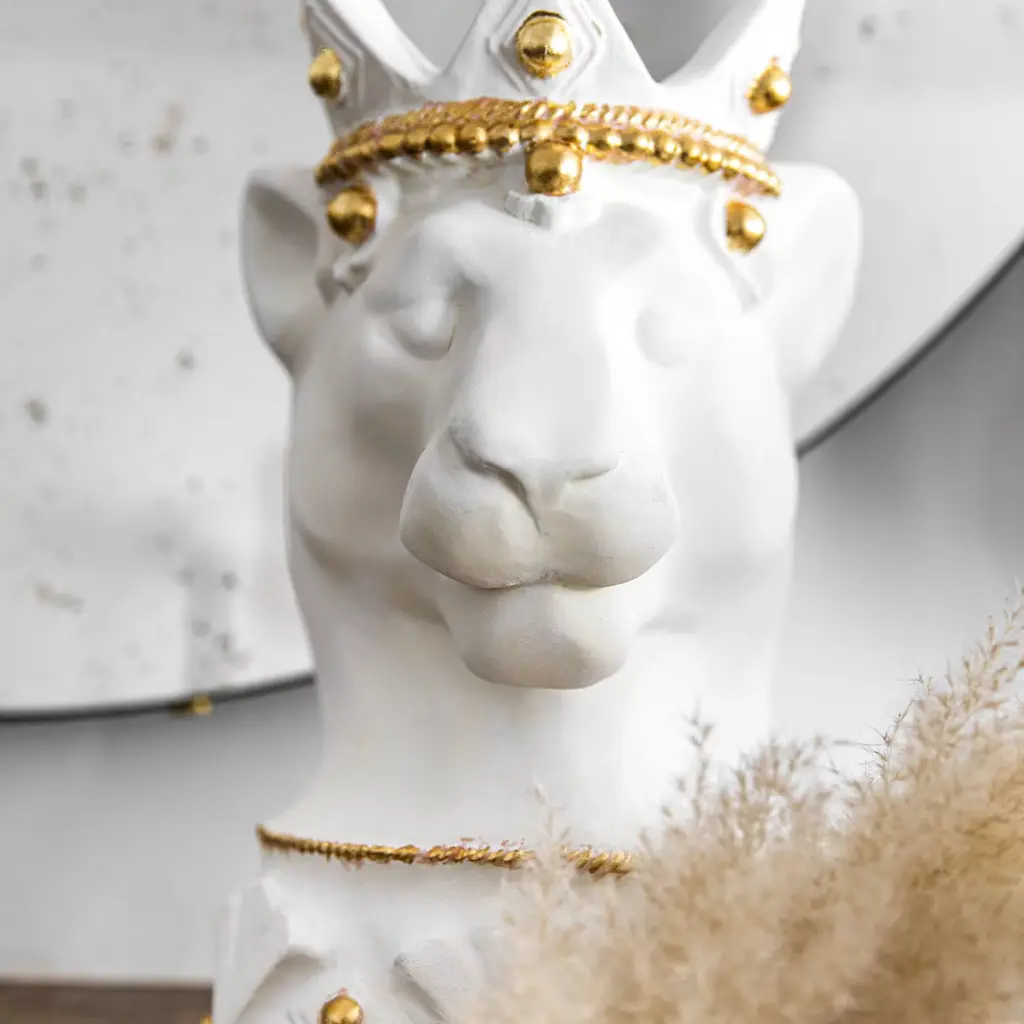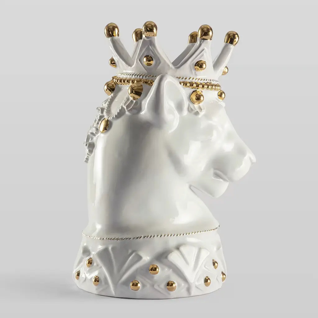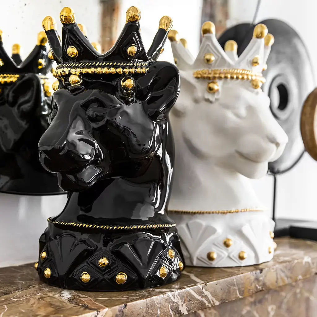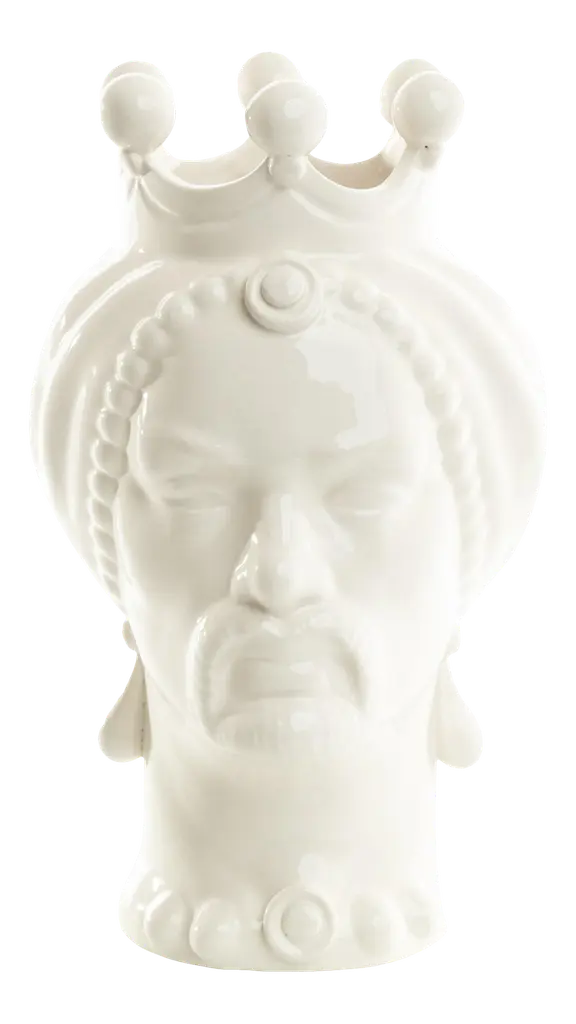 Meticulously crafted from ceramic, this vase showcases a striking depiction of a majestic white puma. It evokes rich Sicilian history, blending the island's tradition with the untamed beauty of nature in an ode to ancient legends. Thanks to the skilled hands of artisans, the moors are transformed into heads of magnificent beasts, celebrating Sicily's wild and captivating essence. Designed to hold fresh flowers, this animal-themed vase adds a touch of untamed elegance to any space.