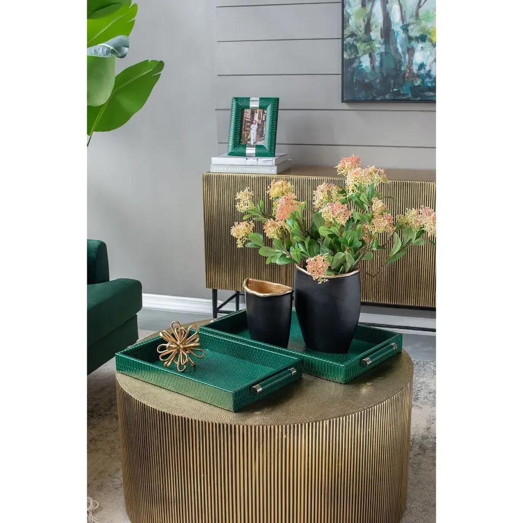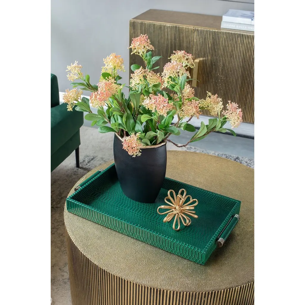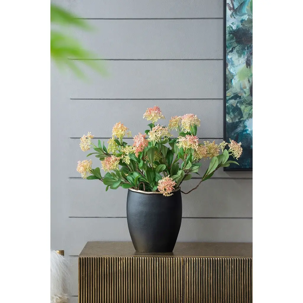 Crafted from premium aluminum, this decorative black and gold flower vase showcases a sculptural silhouette and a unique curved rim that simply begs to be admired. An ideal size to thrive on your dining room table, atop your living room mantel, or in your entryway, this piece can be displayed either empty or as a vessel for a colorful flower arrangement.