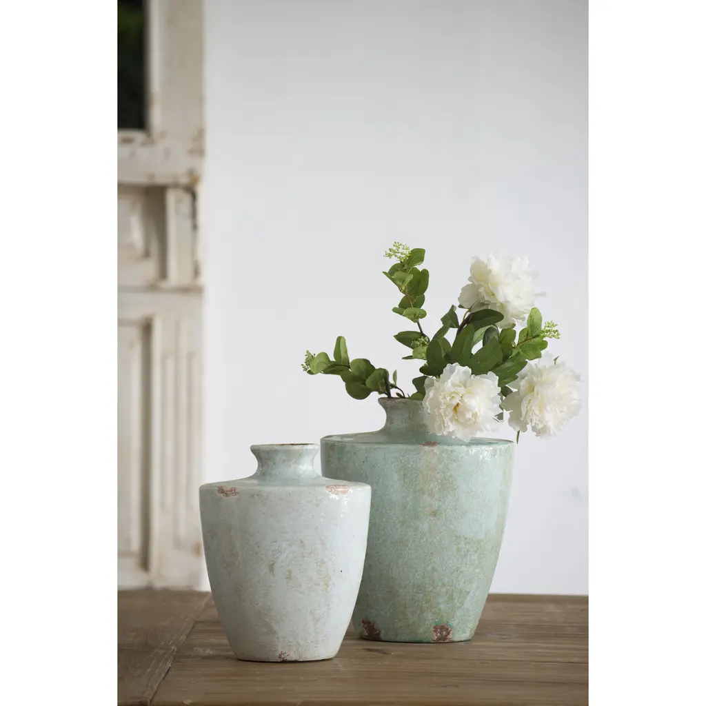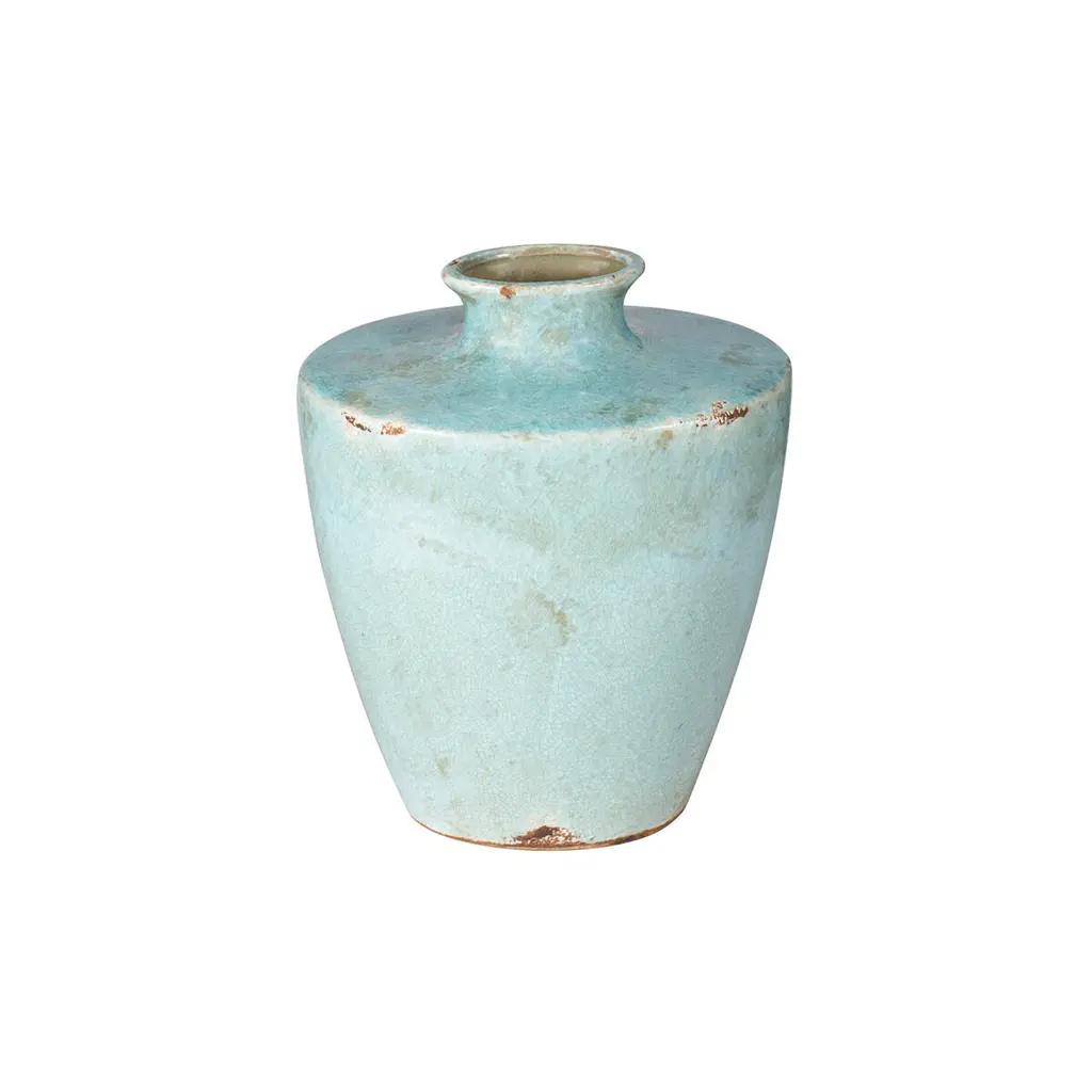With a delicate blue glaze, this Terracotta Vase offers a lustrous shine on its enchantingly simple shape. This vase features a warm, casual look that enhances a wide variety of styles from traditional, to contemporary, to garden-themed. Enjoy how light plays off its shimmery patina when placed in a cheery sunroom, next to an array of glowing candles, or on an airy kitchen counter.