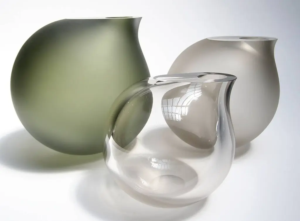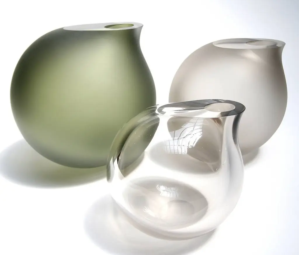 Anna Torfs small vaza glass vase or sculpture in smoke. Available in other colors. Only sanded finish available. Clear no longer available. Shipping from Europe not included.