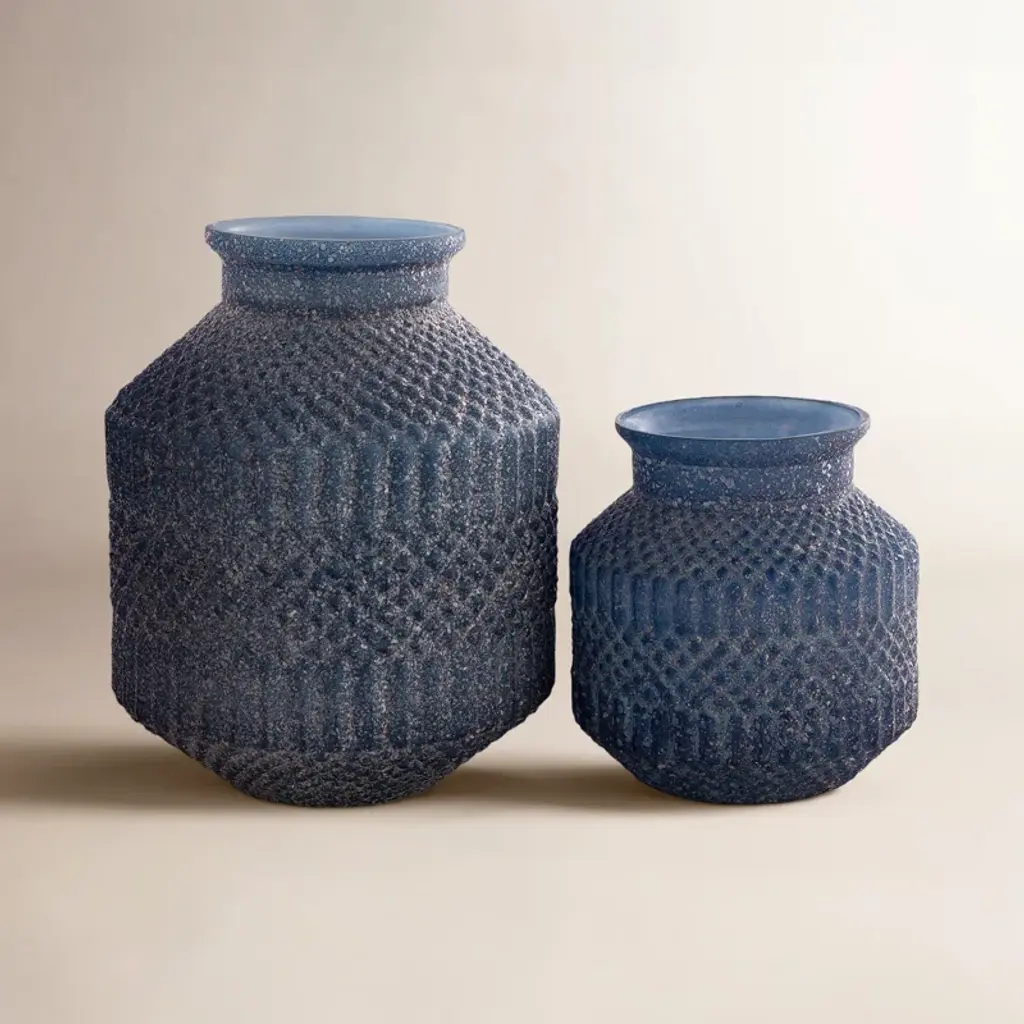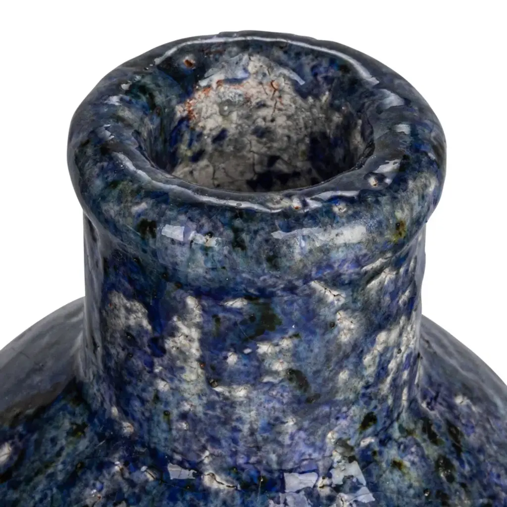 This set of decorative terra-cotta vases with a crackle glaze and navy color is a unique and beautiful addition to any home. The vases have a round shape and narrow opening, with a cracked and glossy surface created by the crackle glaze. The navy color gives the vases a vibrant and elegant look. They can be used to display flowers, plants, or branches, or as decorative accents. Place them on tables, shelves, mantels, or windowsills, and create a cozy and inviting atmosphere in the home. These vases are suitable for coastal, beach, garden, French country, or farmhouse styles, adding elegance and charm to any space. Each vase will vary slightly in color and texture due to the crackle glaze process.