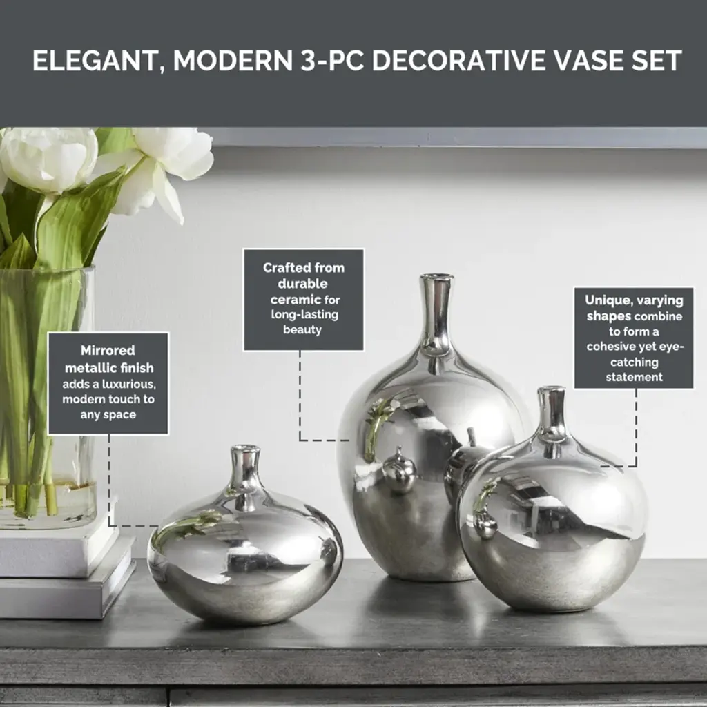 Ansen Mirrored Ceramic Decorative Vases 3-Piece Set