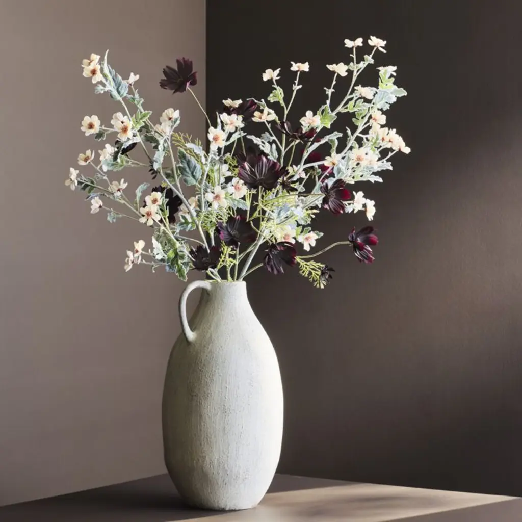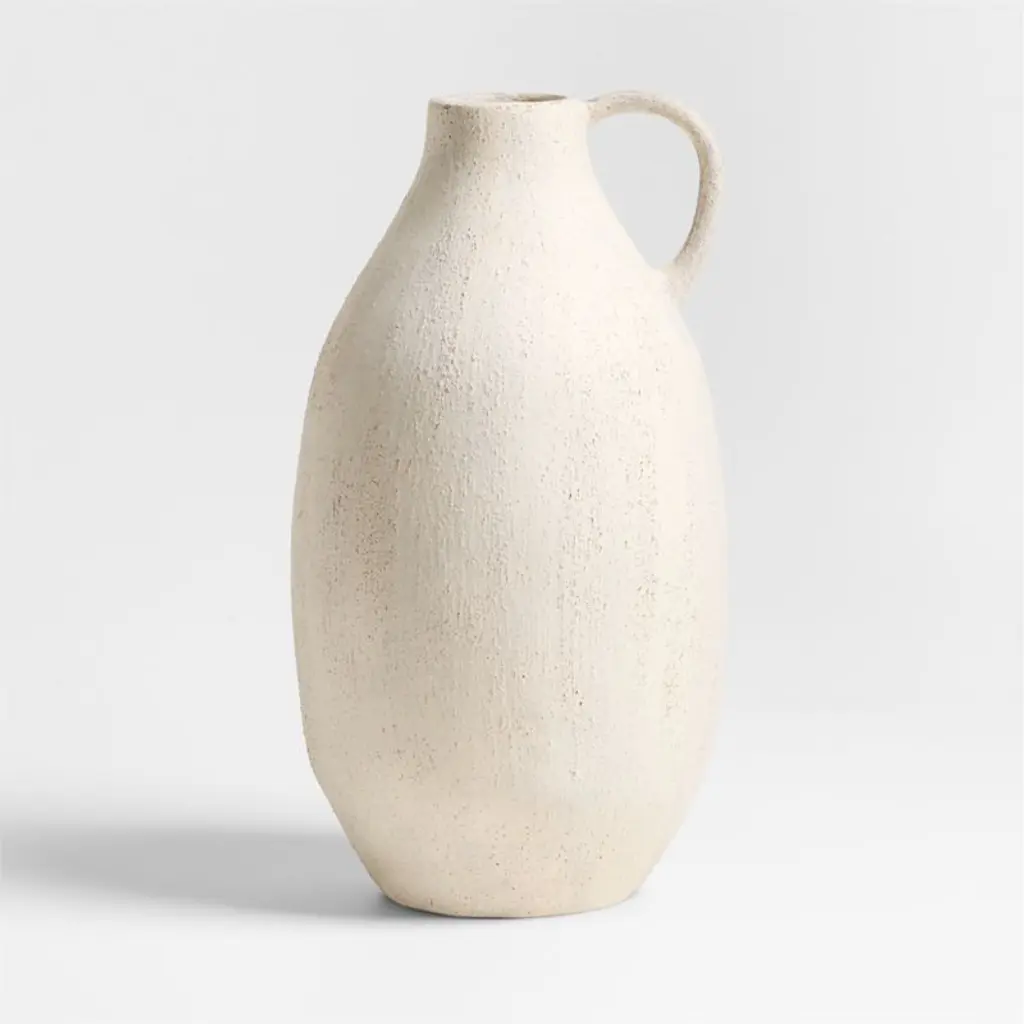 Inspired by ancient ceramics discovered on the coast of Italy, our tall Antiguo vase showcases the same timeless artisanship. Skilled craftspeople shape each vessel by hand, streamlining the classic amphora-inspired silhouette and graceful handle. A highly textural matte cream glaze gives the one-of-a-kind vase a plaster-like finish for a found-object look and feel. We love it on its own or filled with our lush faux botanicals.