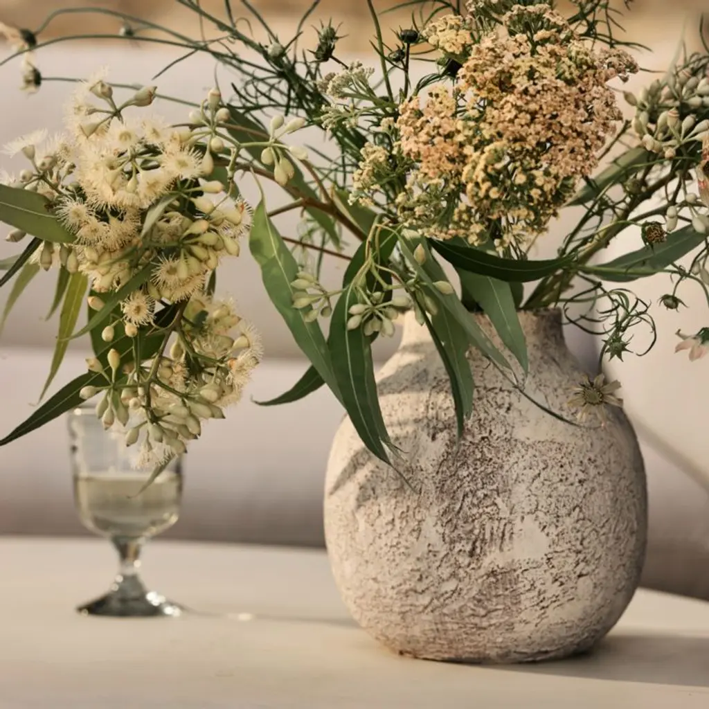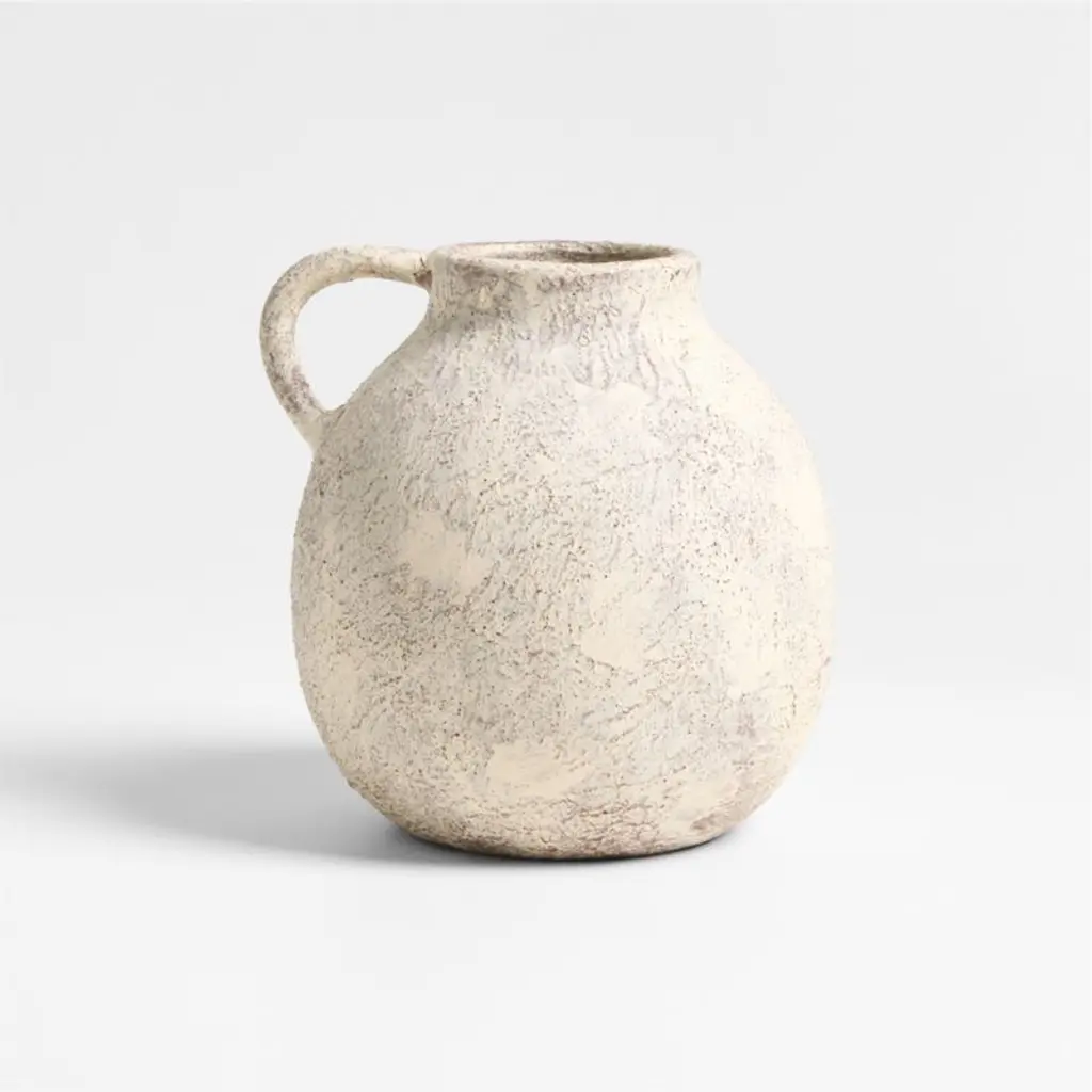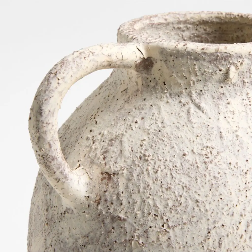 Inspired by ancient ceramics discovered on the coast of Italy, our petite Antiguo vase showcases the same timeless artisanship. Skilled craftspeople shape each vessel by hand, streamlining the classic curves and graceful handle. A highly textural matte cream glaze gives the one-of-a-kind vase a plaster-like finish for a found-object look and feel. We love it on its own or filled with our lush faux botanicals.