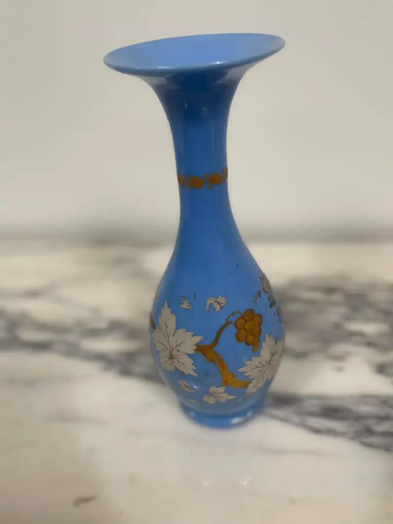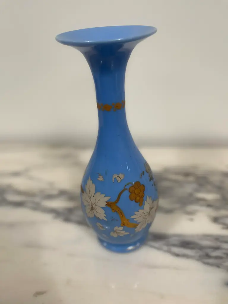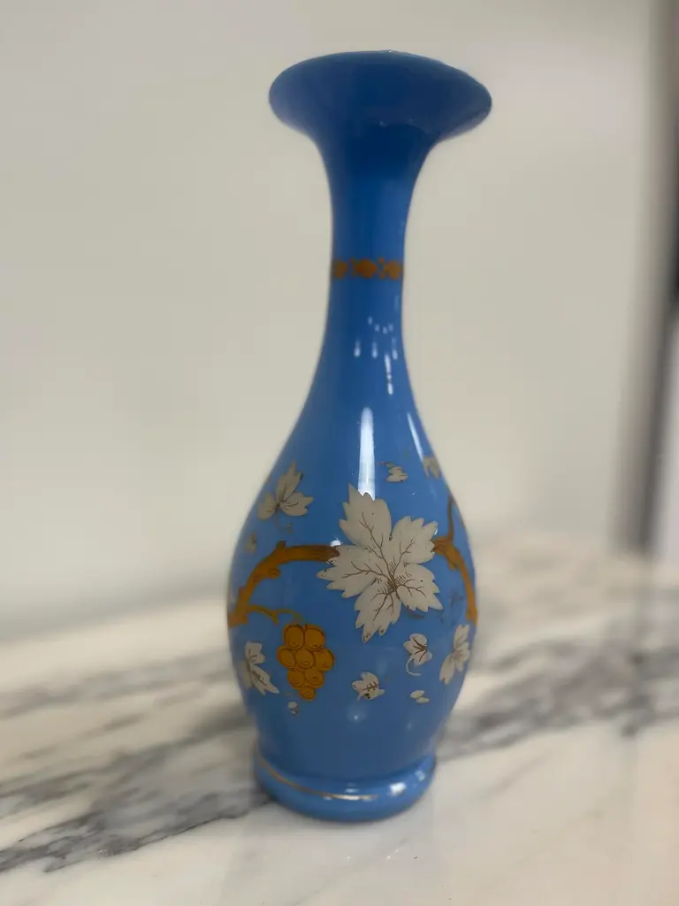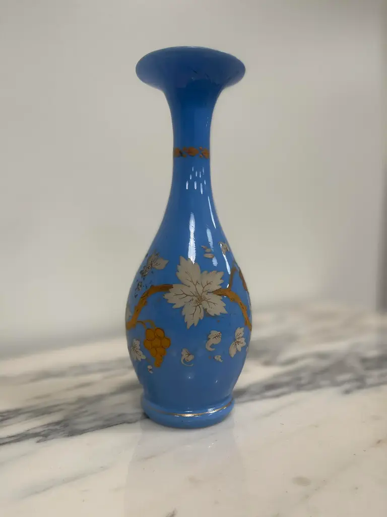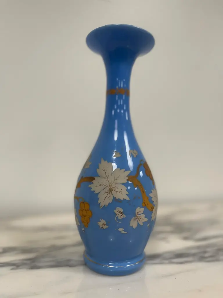 The standout feature of this vase is the grape branch motif, intricately adorned on its surface. The delicate depiction of grapevines, completed with leaves and clusters of grapes, brings a touch of nature indoors. The motif is finely detailed, showcasing craftsmanship of the artist.