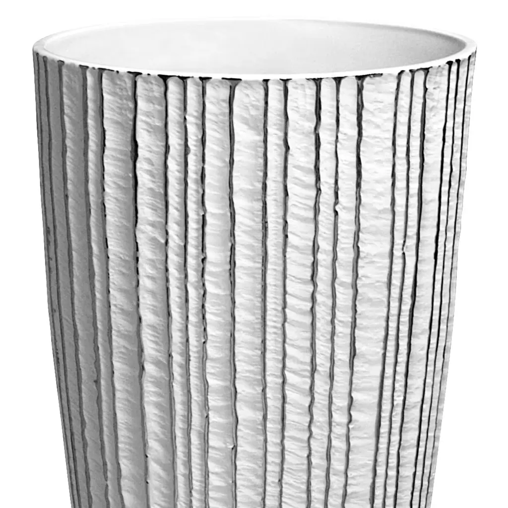 In this exquisite vase in porcelain, the minimalist design is enriched with precious details in hand-applied platinum that run vertically along the outside of the vase and make it a striking objet d'art.