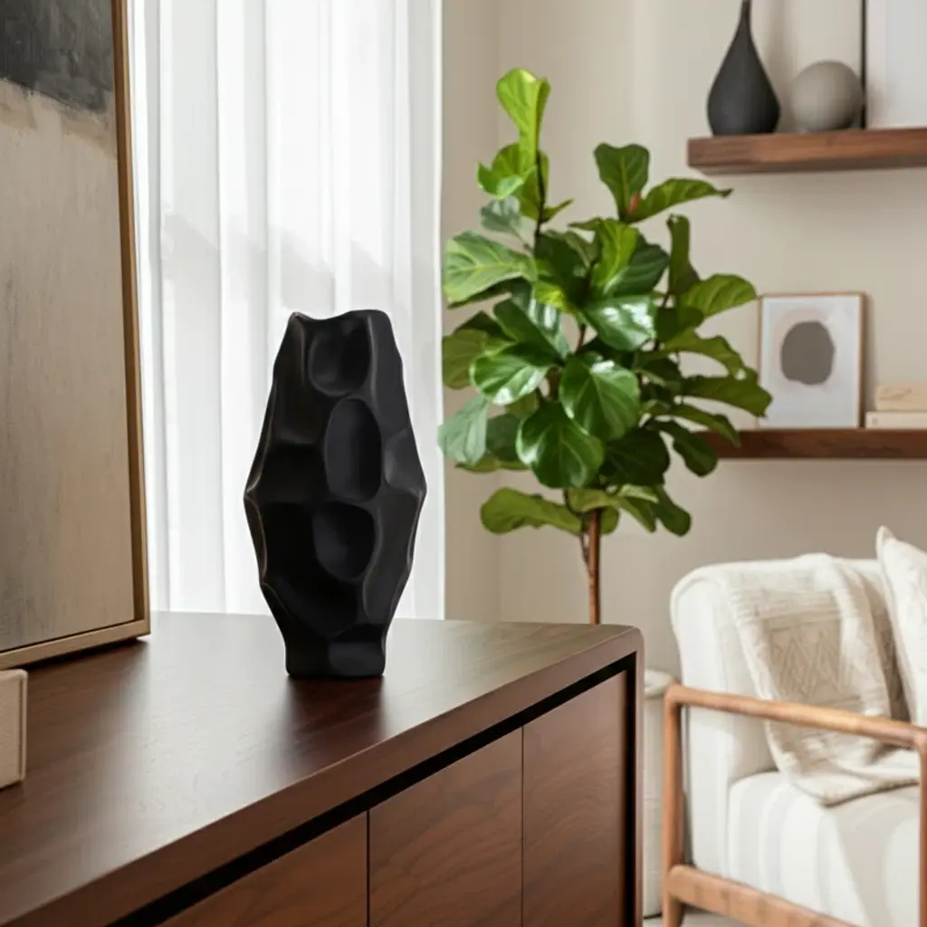 Elevate your home's ambiance with the small vase, a masterpiece born from high-quality stoneware. Its sleek hue emanates timeless elegance, ensuring it becomes the focal point of any room. Exquisitely crafted to blend with any decor, this stunning vase stands as a testament to refined taste. Enhance your living space with this versatile piece that perfectly encapsulates the essence of modern home design.