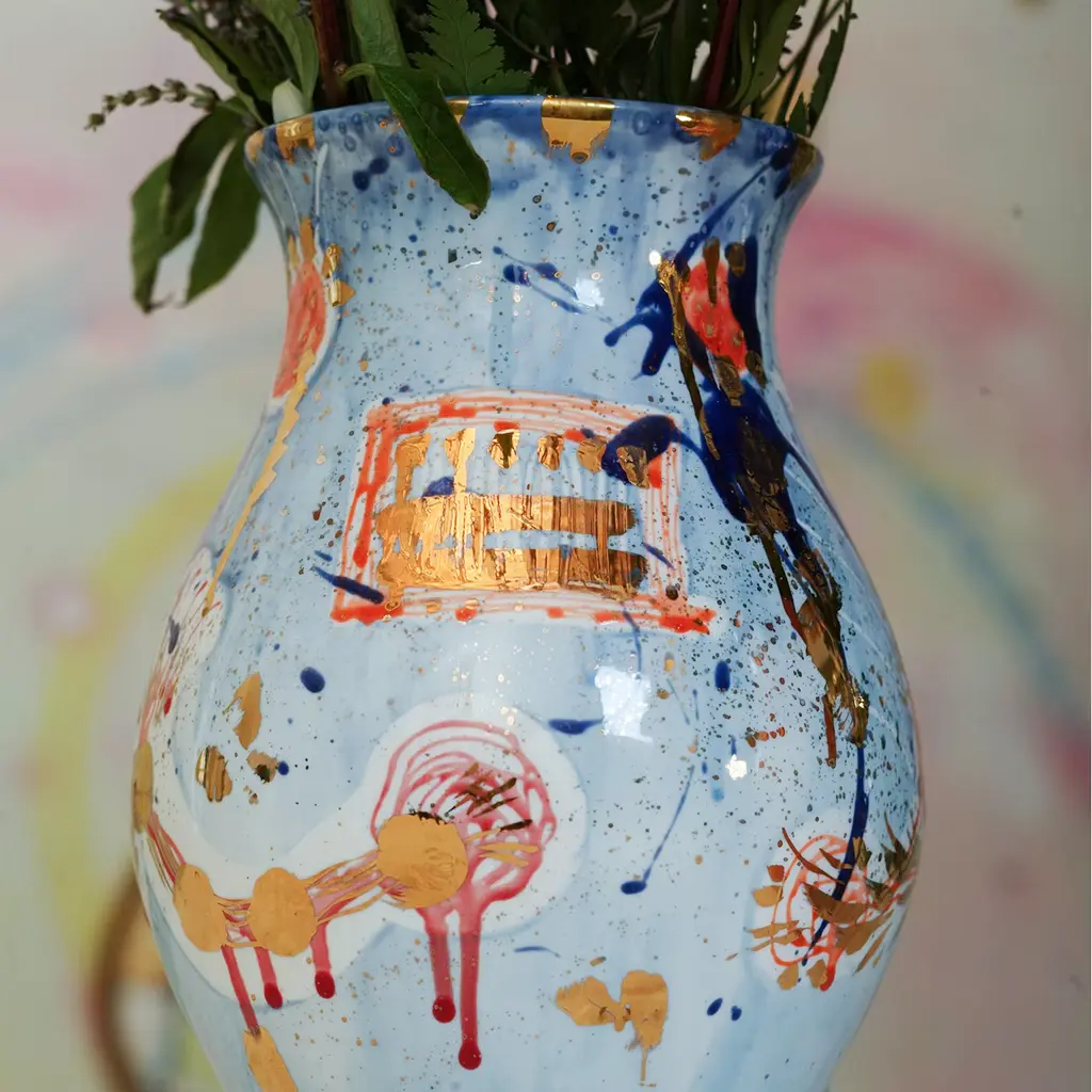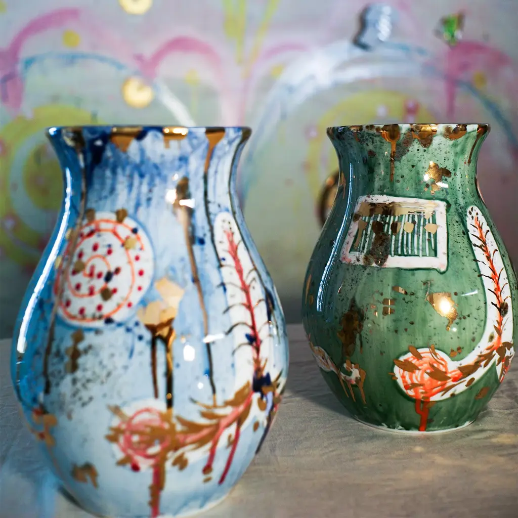 The 'Livia’s Garden' collection draws inspiration from the renowned fresco honoring Emperor Augustus' wife. Livia, known for her strength, contrasts with the collection's poetic and gentle garden aesthetic, reminiscent of Eden. The vases feature a simple, primal design, with openings allowing flowers to freely cascade.