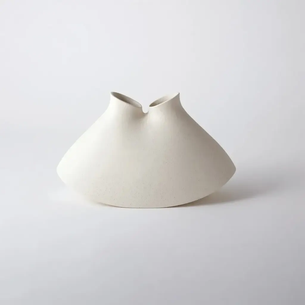 The desire to celebrate Lecce limestone's natural ability to absorb the light inspired by designer Luca Scacchetti, the Arcadia series this vase belongs to. Contrasting profiles contributing to outline a well-balanced silhouette of restrained elegance define its silhouette, where the eye cannot help but linger on unrepeatable and unpredictable natural traceries.