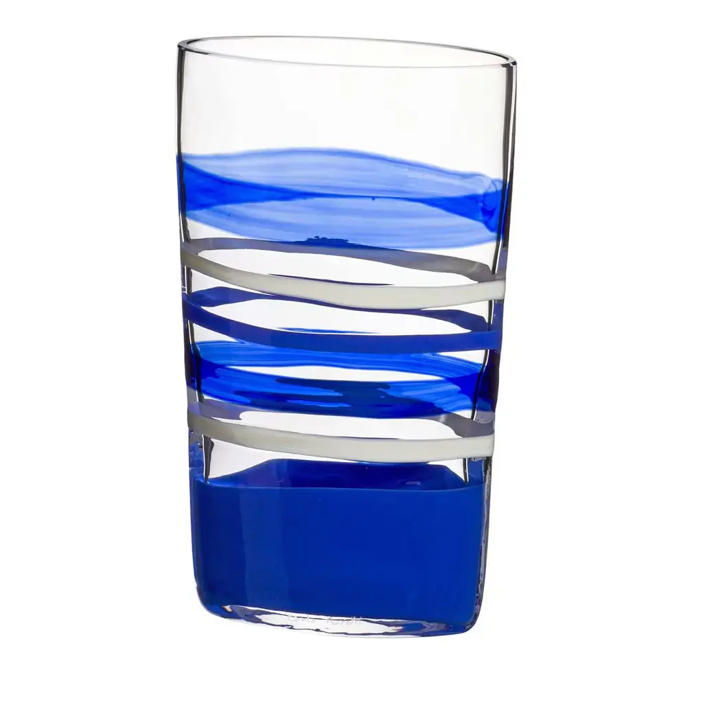 Signed by the master glassmaker following a painstaking artisan process of blowing and finishing, this one-of-a-kind vase will shine in refined modern settings. Its timelessly sophisticated appeal is increased by the choice of neutral tones for its decoration, comprised of parallel rings in milky-white and gray paste paired to a black cloud at the base. A blue-toned version is also available, please consult the Artemest catalog.