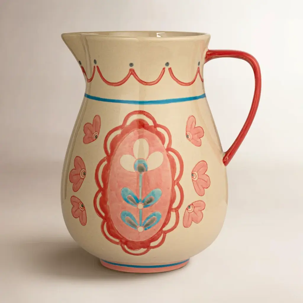 Soft and playful, the Armony vase is adorned with hand-painted floral designs in lively pinks, greens, and blues. Its smooth ceramic surface and subtle matte finish give this piece a delicate charm, making it a refreshing decorative accent. Composed of two parts—a vase and a matching lid—it boasts aesthetic appeal and functionality. With its vibrant colors, this vase can brighten any space effortlessly. Please contact the Concierge for more details.