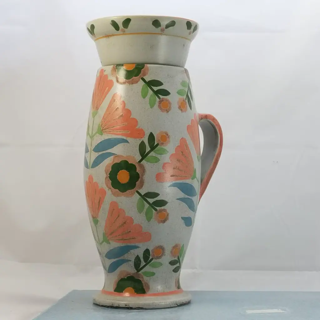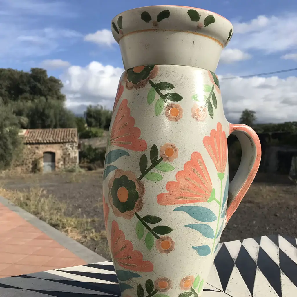 Armony Multicolor Ceramic Vase With Lid With Floral Design