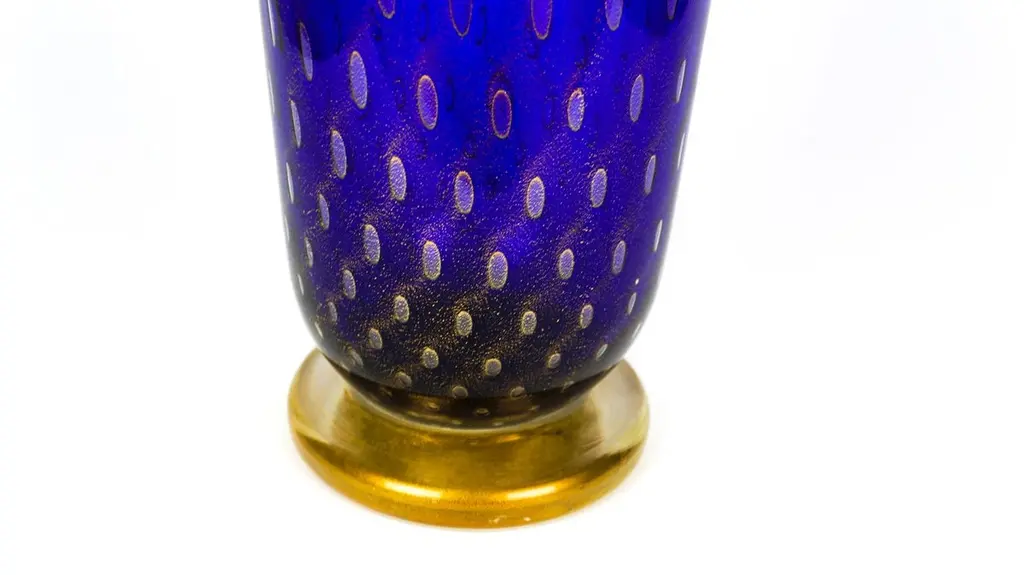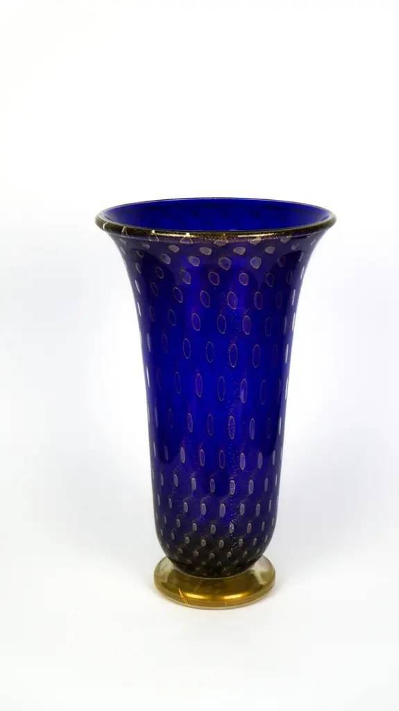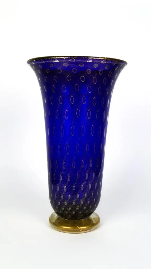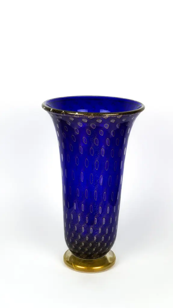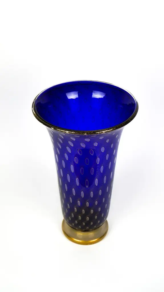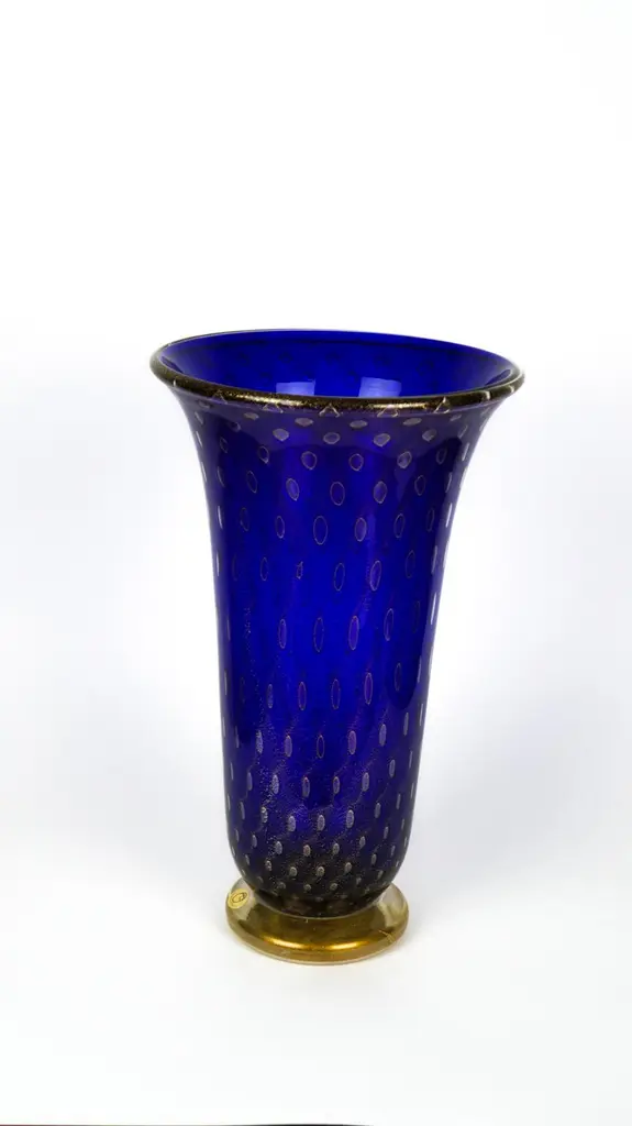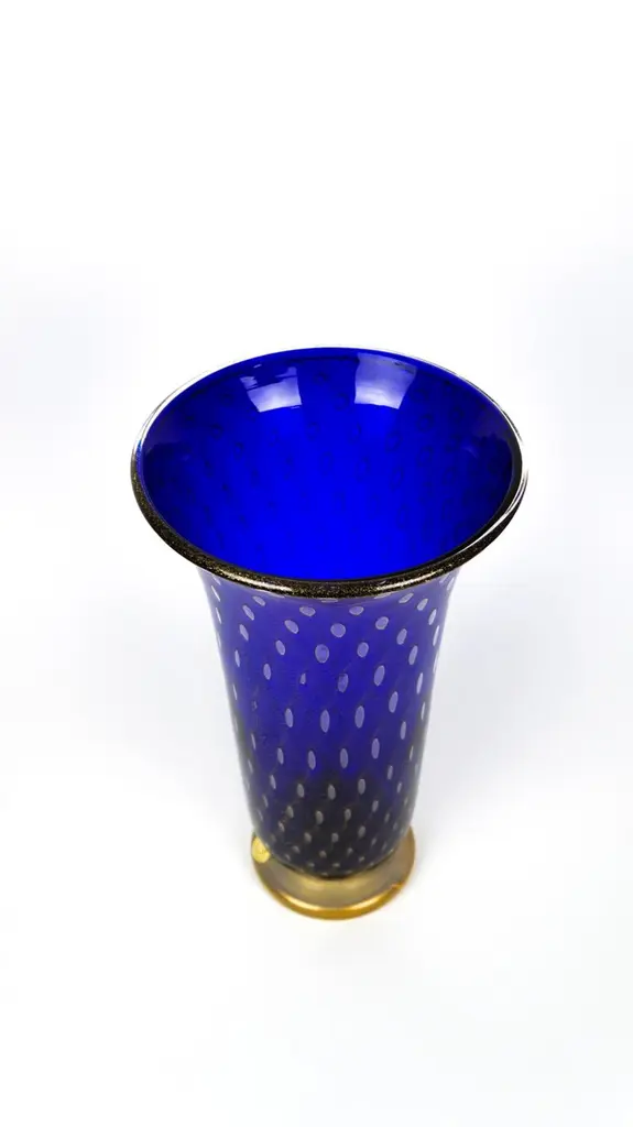 Art Deco Blue Gold Design Italian Art Glass Vase By Stefano Mattiello