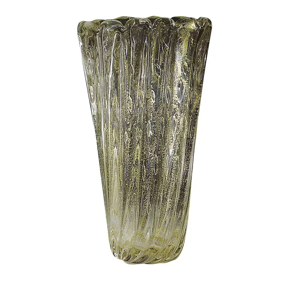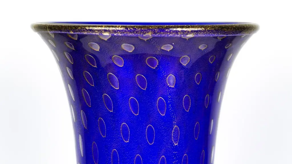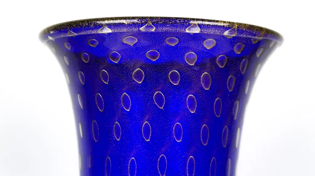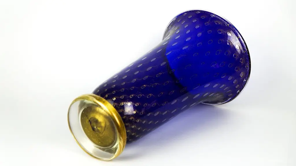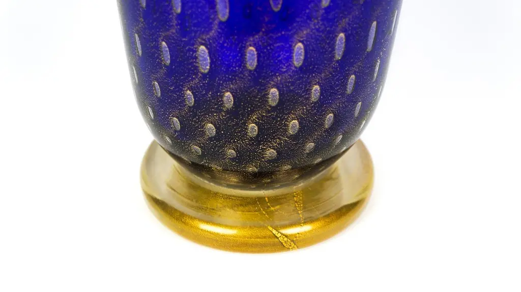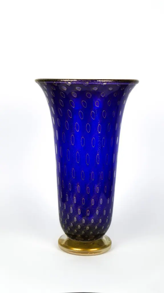 Art Deco Blue Gold Design Italian Art Glass Vase By Stefano Mattiello